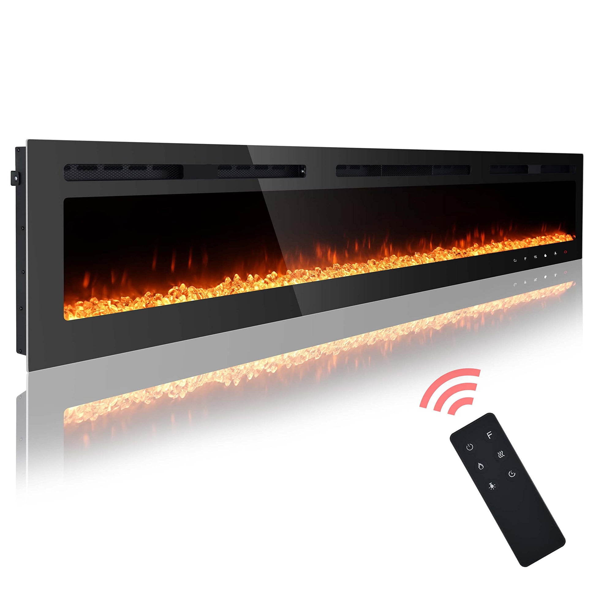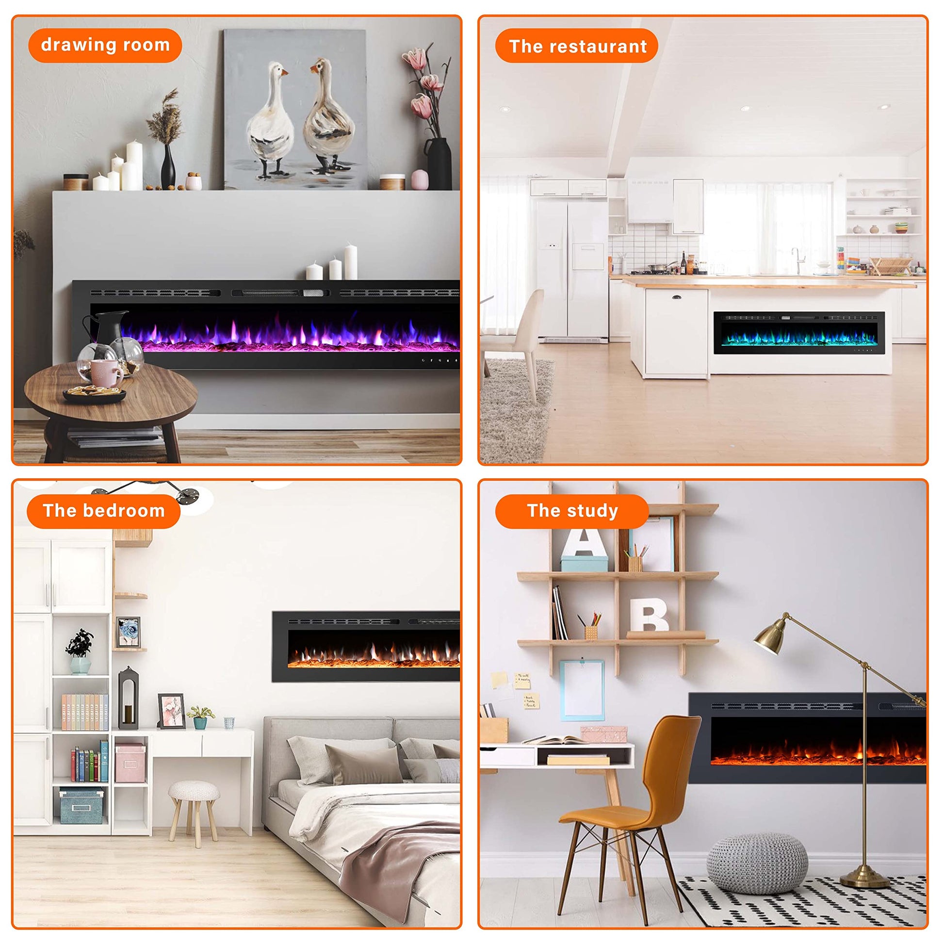 100 inch Electric Fireplace Insert, Wall Mounted, 12 Flame Colors, Remote Control, Timer