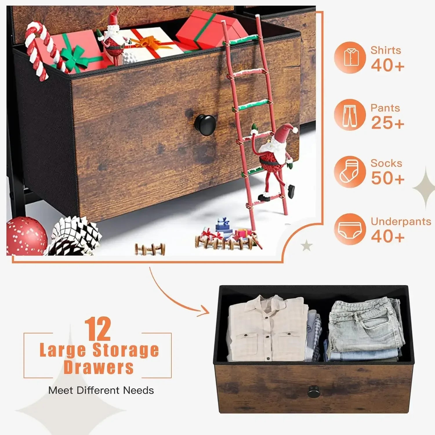 This 12-drawer tall dresser is expertly crafted with a durable wood top, providing ample space for storing your clothing and accessories. With 12 spacious drawers, this dresser offers functional storage without compromising style. Perfect for any bedroom, this dresser combines practicality and elegance for a timeless addition to your home.