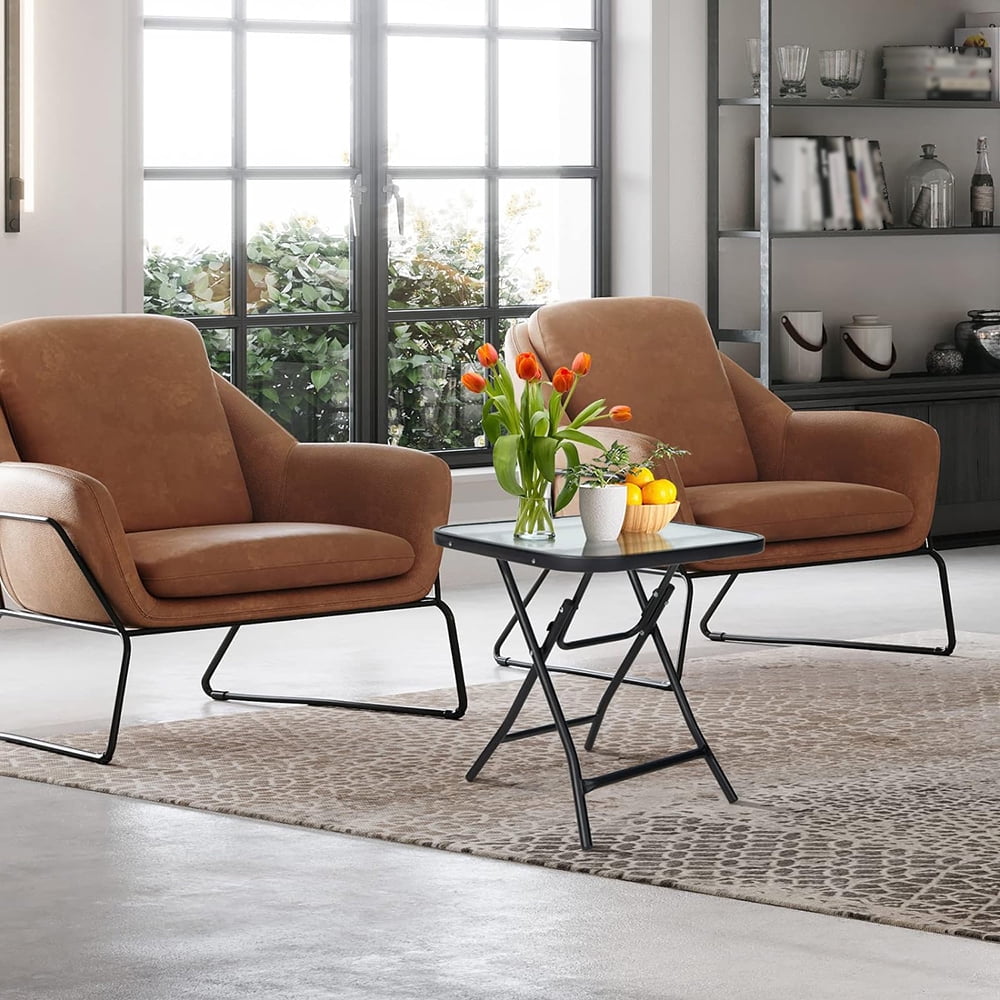 18” Folding Square Glass Side Table, Portable Patio Bistro Coffee Table with Tempered Glass Tabletop, Solid Steel Structure for Yard, Lawn, Garden