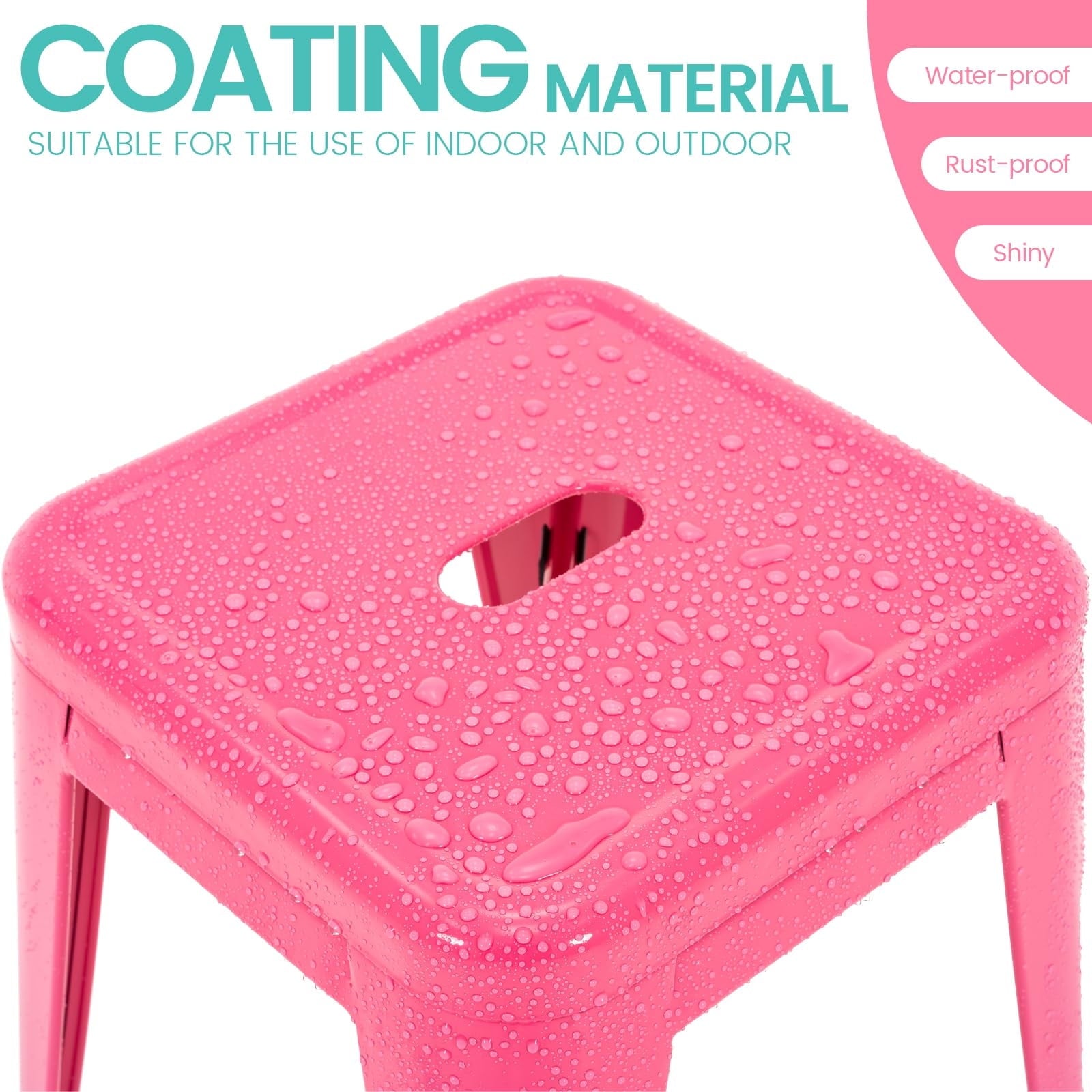 18 Inch Bar Stools Set of 2, Stackable Backless Industrial Metal Barstools for Indoor Outdoor Kitchen Dining Patio Garden Classroom (Hot Pink)