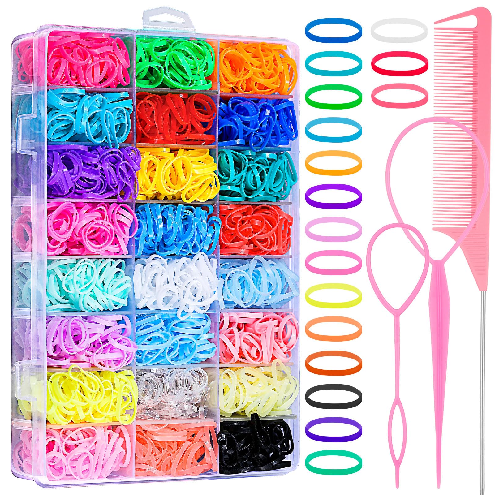 - 24 Color Rubber Bands with Organizer Box: You will receive 2200pcs mini elastic hair bands, 24 different colors with a plastic box(some colors are random), different colors are separated and packaged for easy access and storage, suitable as stocking stuffers for girls women mom