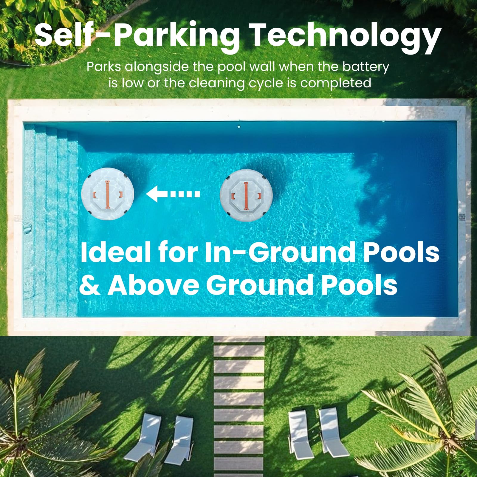 2025 Cordless Robotic Pool Cleaner - 120 Mins Automatic Pool Vacuum for Above Ground Pool & In - Ground Flat Pools up to 1000 Sq.Ft, Robot Pool Cleaner with Self - Parking Tech