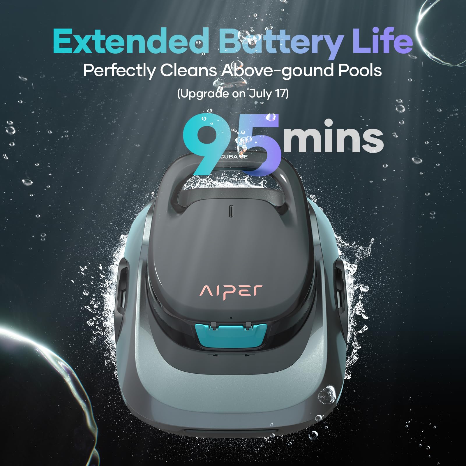 (2025 Upgrade) AIPER Scuba SE Cordless Pool Cleaner, Upgrade 95-Min Runtime, Smart Self-Parking, Pool Vacuum for Above-Ground Pools up to 860 Sq.ft
