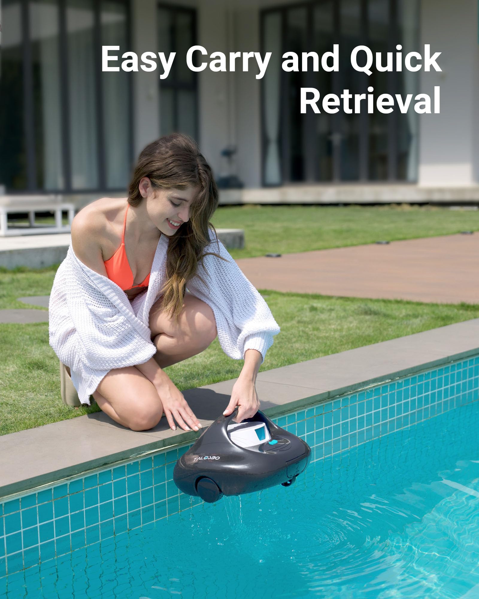 - Lightweight & Energy-Efficient Design: The Pleco SE robotic pool vacuum reduces drag and power use for efficient cleaning. Its advanced motor provides strong suction at 32 GPM for a deeper clean. Plus, its super-lightweight design makes it easy to handle and pull out of the pool using the included hook, making maintenance hassle-free.