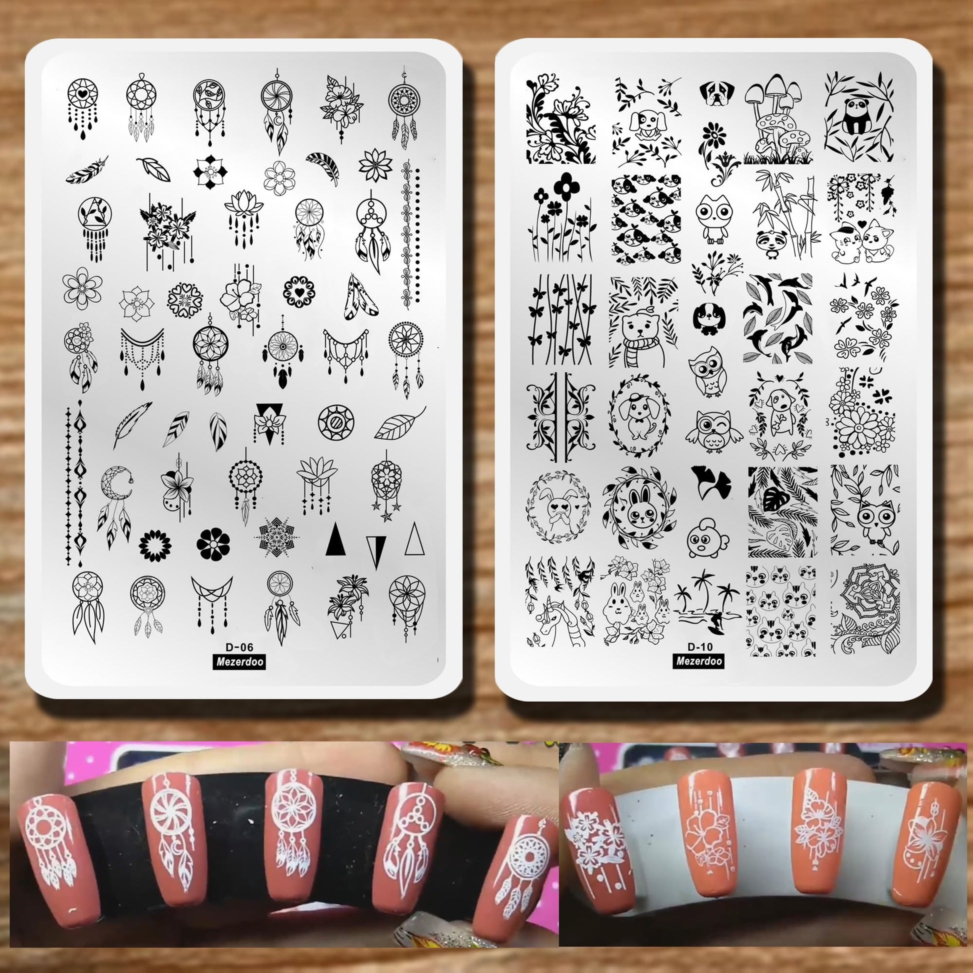 2Pcs Mix Nail Art Stamp Nail Stamping Template Dreamcatcher Feather Pendant Image Nail Plates Cute Animals Cartoon Diy Nail Desi