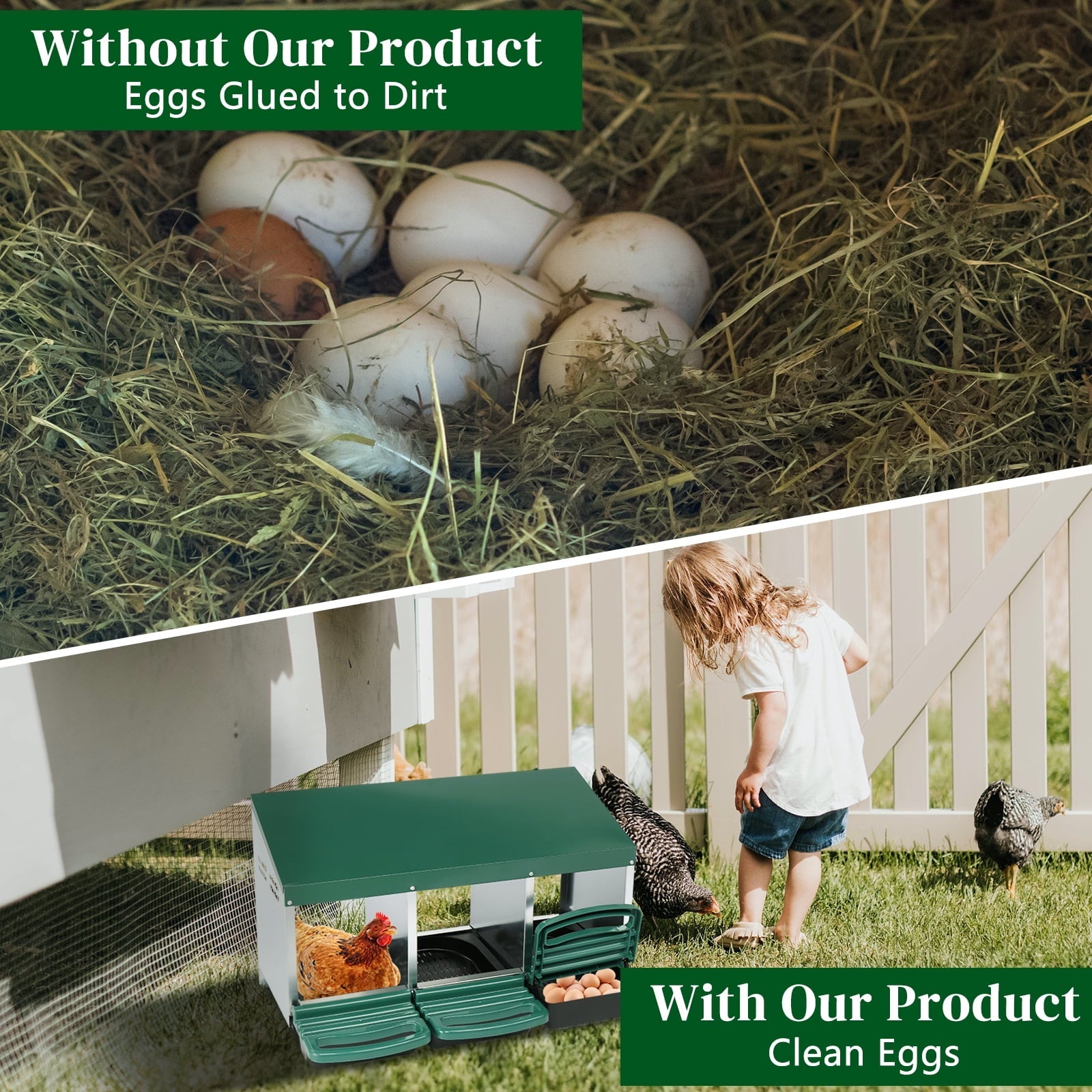 3 Compartment Roll Out Chicken Nesting Box w/ Plastic Basket - Steel Frame 31.9x20.1x18.5in(Green)