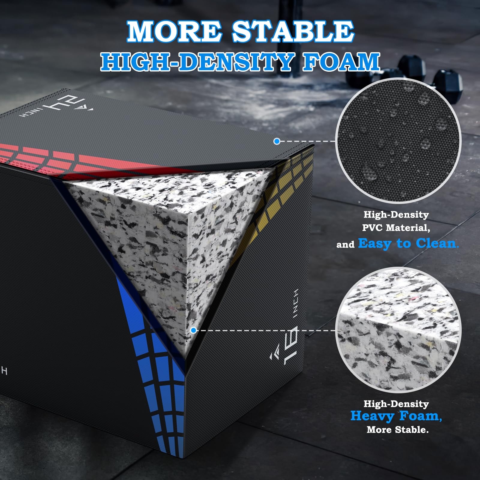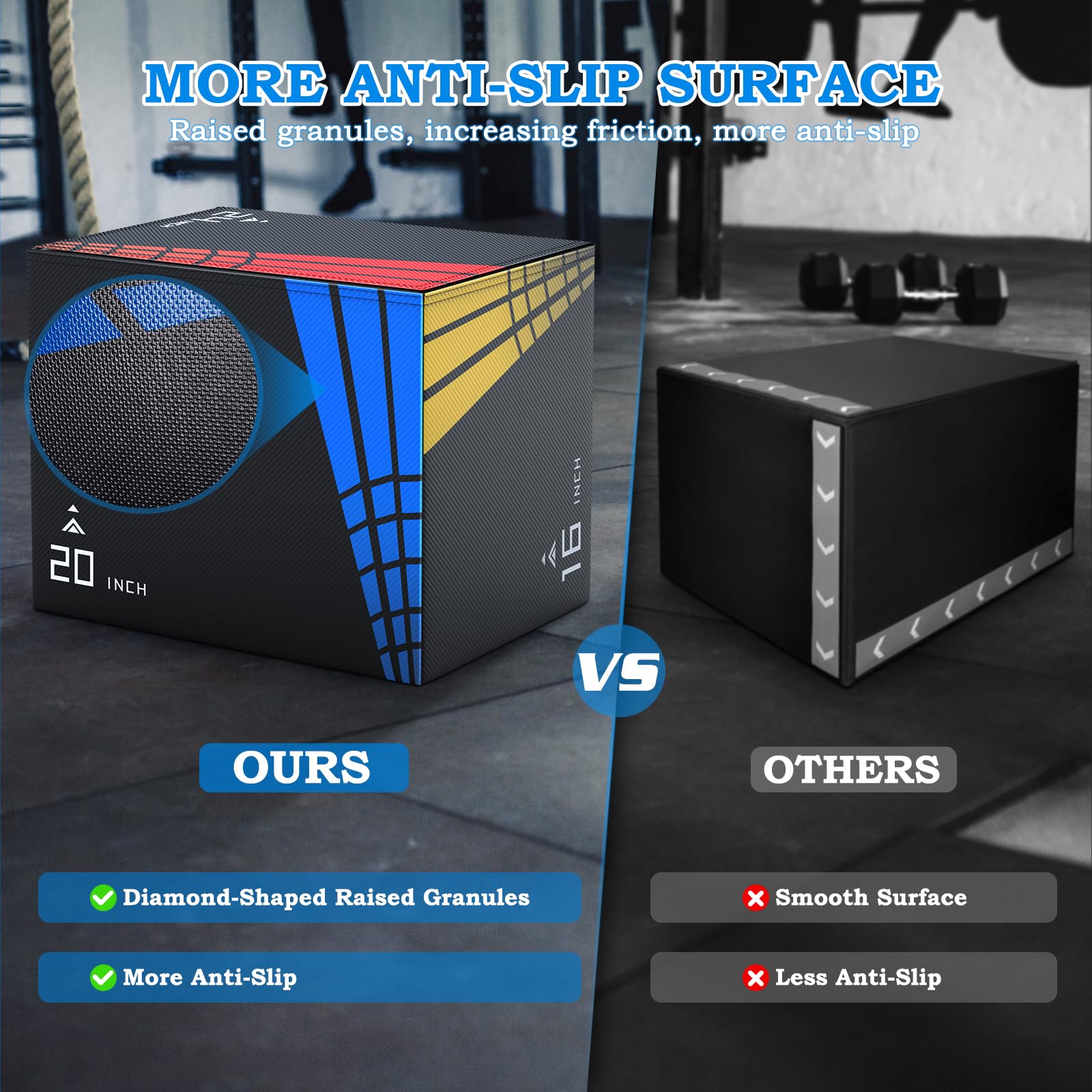 3-In-1 Foam Plyometric Jump Box,Stable Plyo Box Covered with 3MM Anti-Slip Particles,24βx20βx16βStable Box Jumps for Home Gym Fitness Workout Training,440lb Weight Capacity