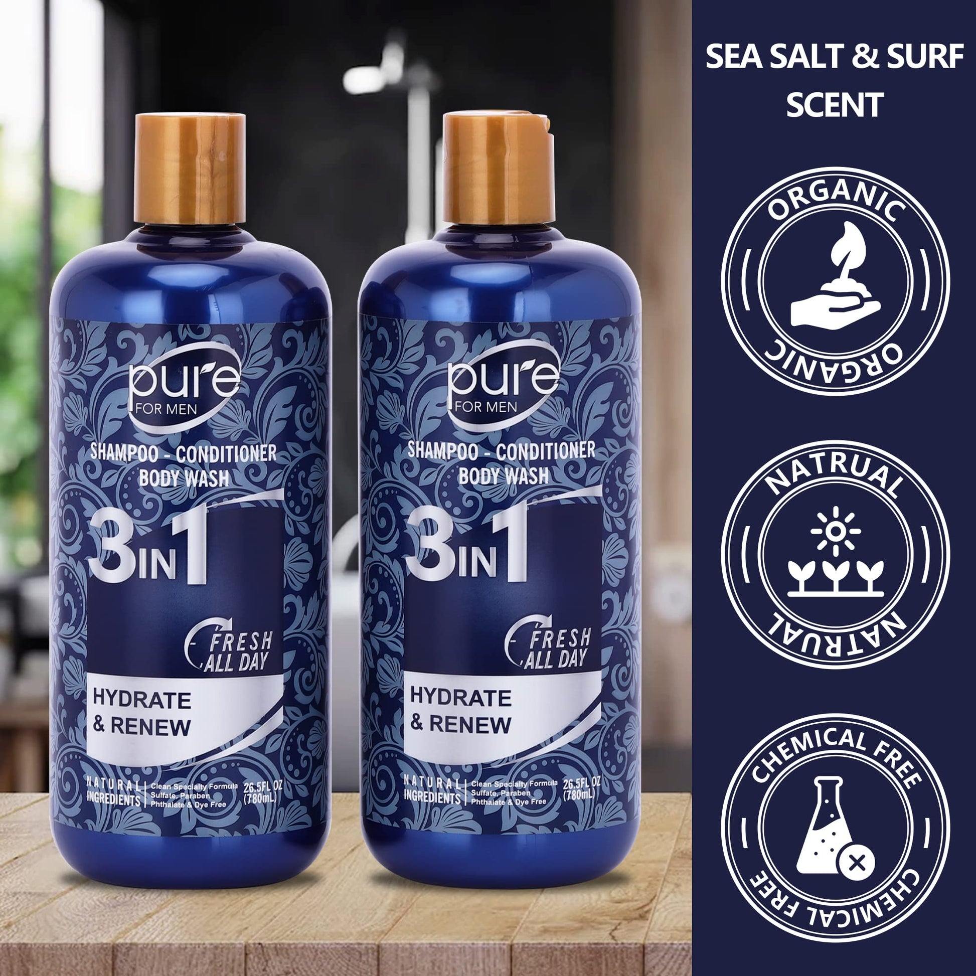 3-in-1 Men's Shower Gel, Shampoo and Face Wash - Paraben & Sulfate Free, Keeps You Fresh All Day! 2 Pack.