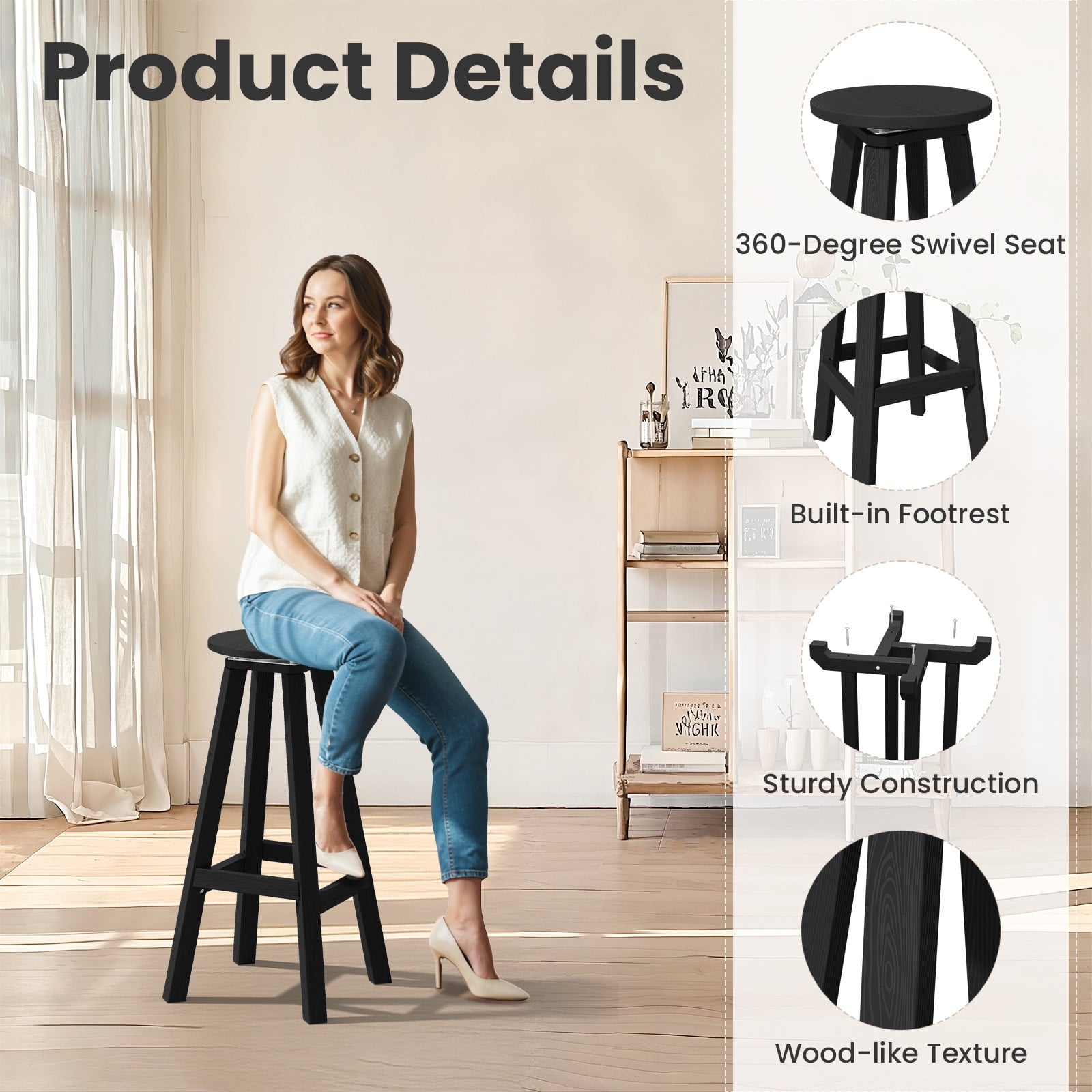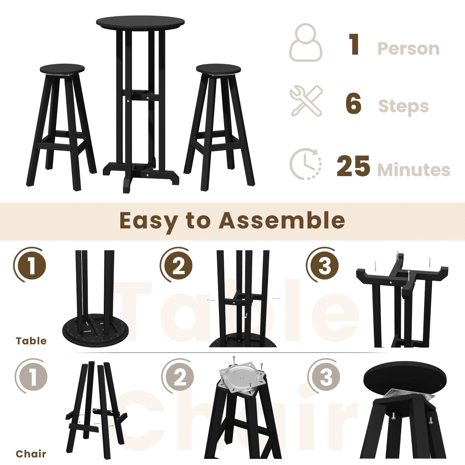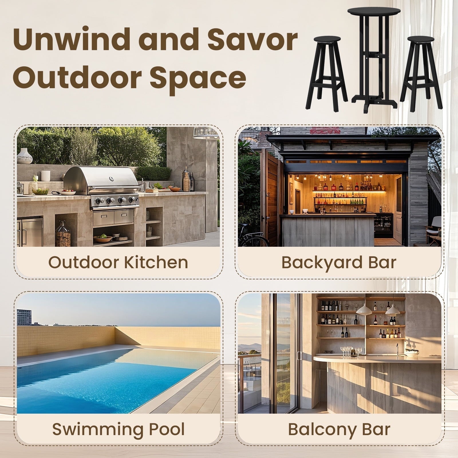 3-Piece Outdoor Bar Set – Weather-Resistant HDPE Bistro Furniture with Bar-Height Table & 2 Swivel Stools for Patio, Poolside, or Indoor Use,Black