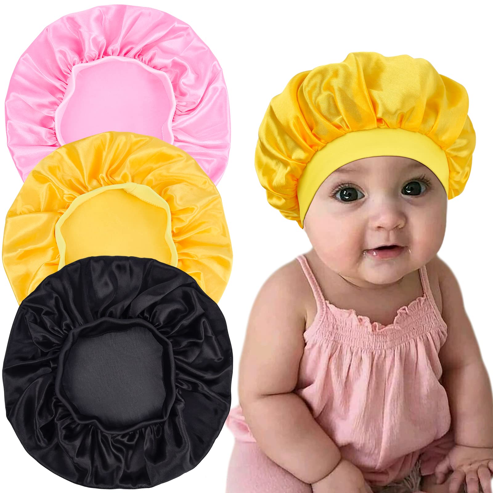 3 Pieces Kids Satin Bonnet Sleeping Cap Silk Wide Band Night Hats Hair For Natural Hair Teens Toddler Child Baby