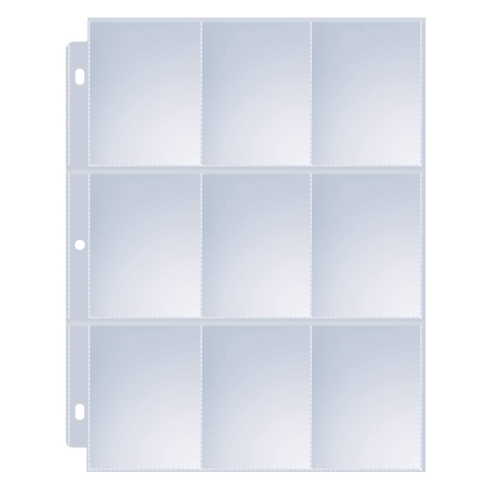 - 36 Pages, Holds 648 Cards:9-Pocket for each page protector, double-side design allowing you put two cards in one sleeve. 36 pages card sleeves hold up to 648 cards. Page protector fit for standard 3-ring binder.