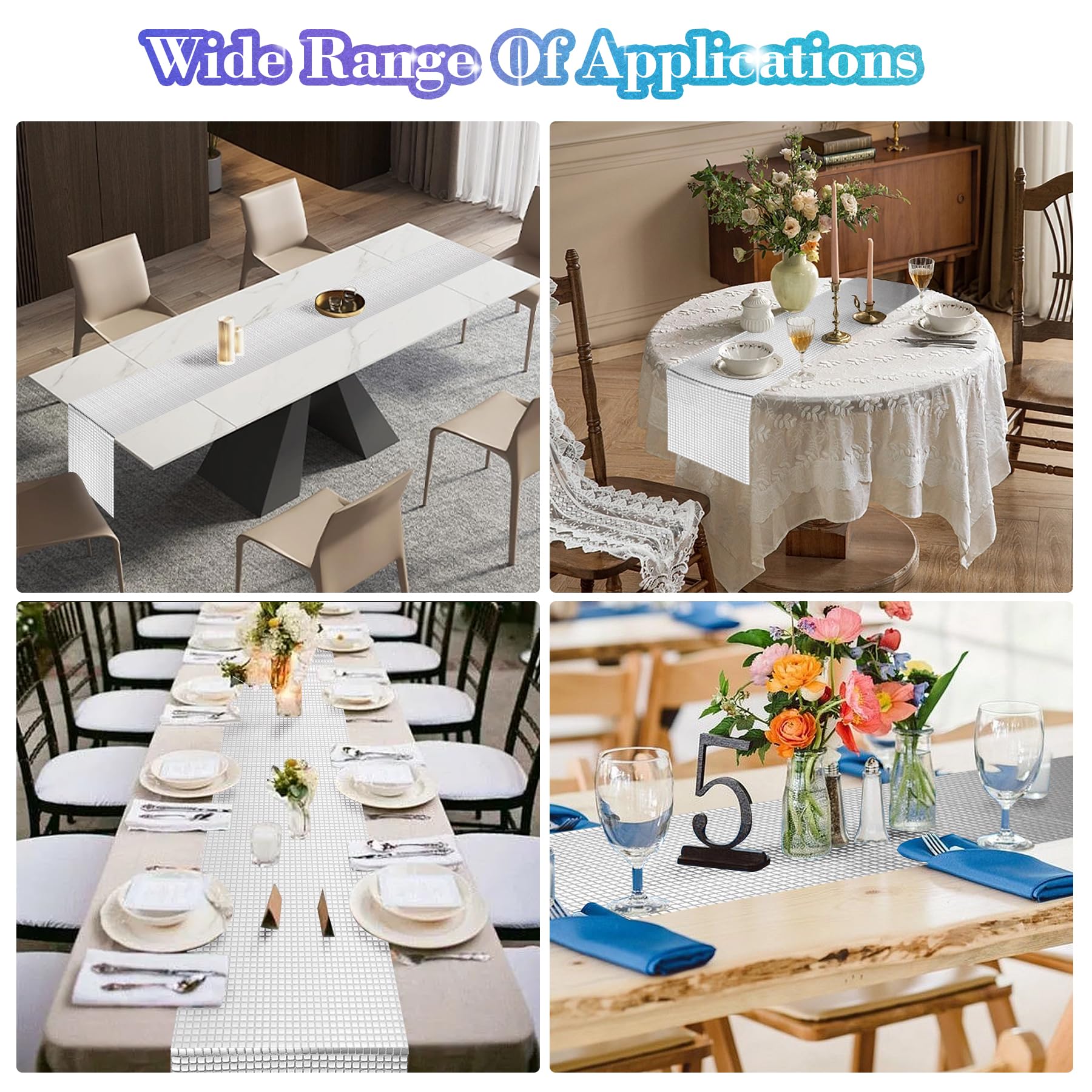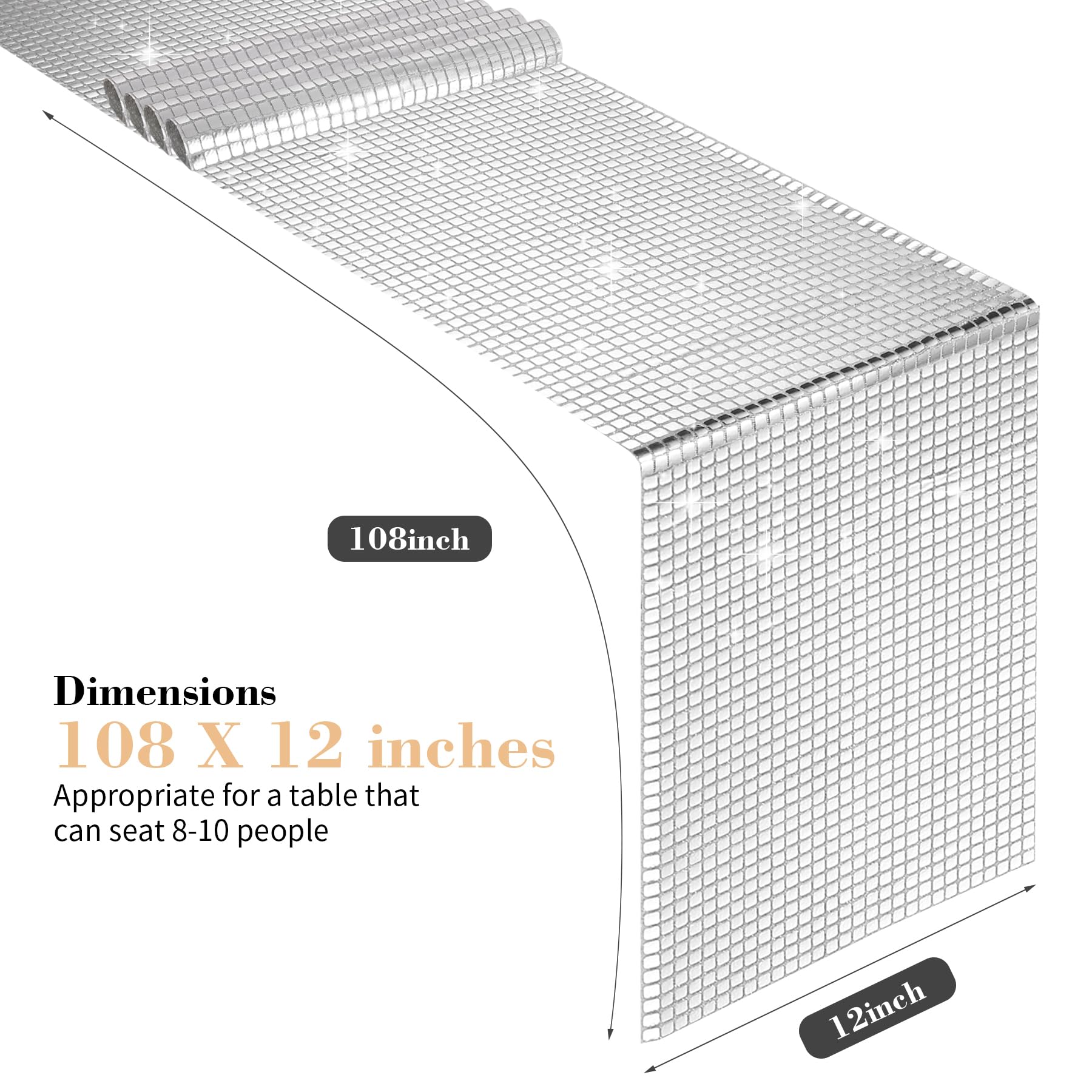 - ELEVATE YOUR PARTY DECOR : These sparkling table runners are perfect for adding glamor to your party. The mirrored silver foil catches the light and creates a shimmering effect that will impress your guests