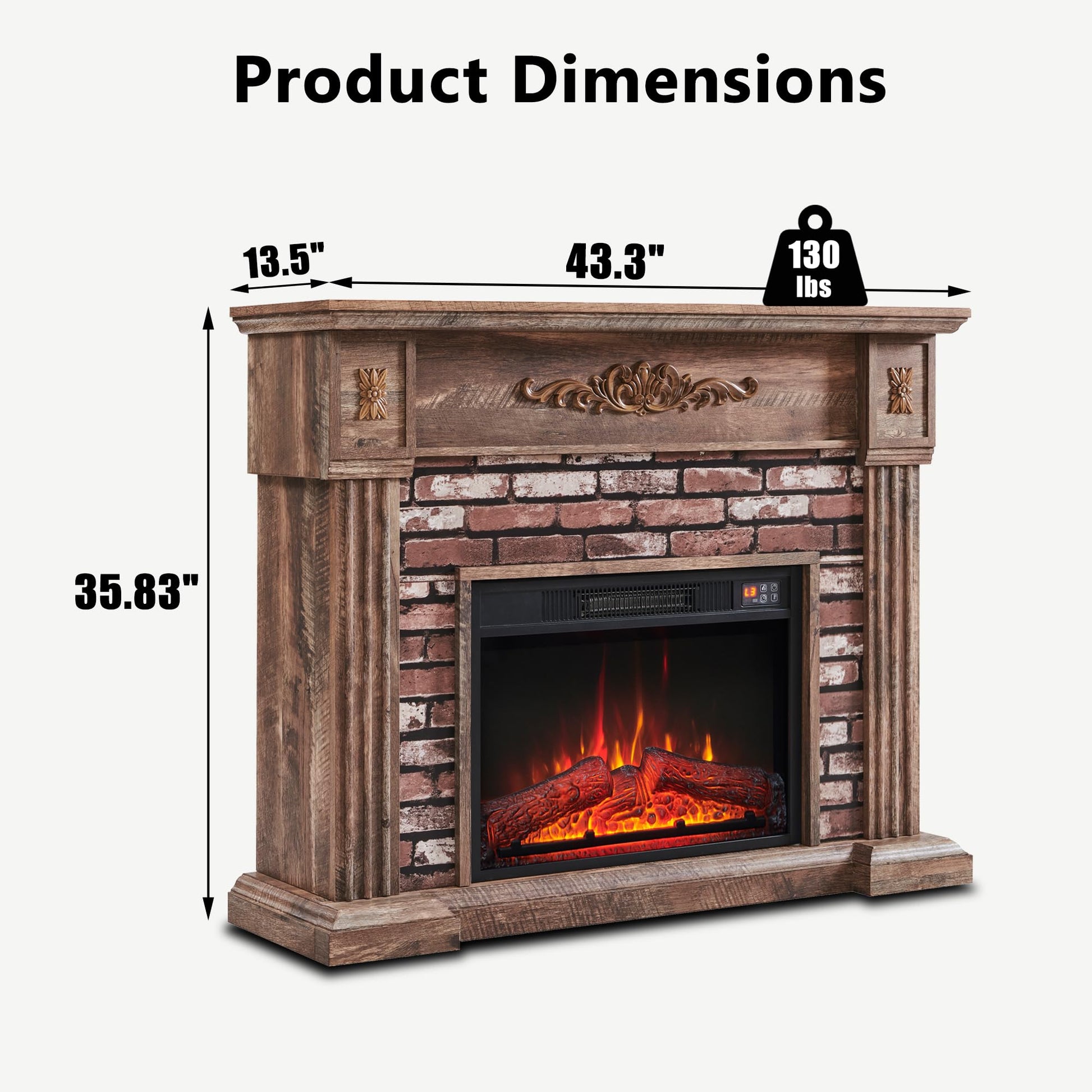 - 【Dimensions】Electric Fireplace with Mantel: 13.5' D x 43.3' W x 35.83' H. Electric Fireplace: 5.15' D x 23' W x 17.1' H. Feel the realistic log burn, enjoy the warmth and create a cozy space while it enhances your living room's décor