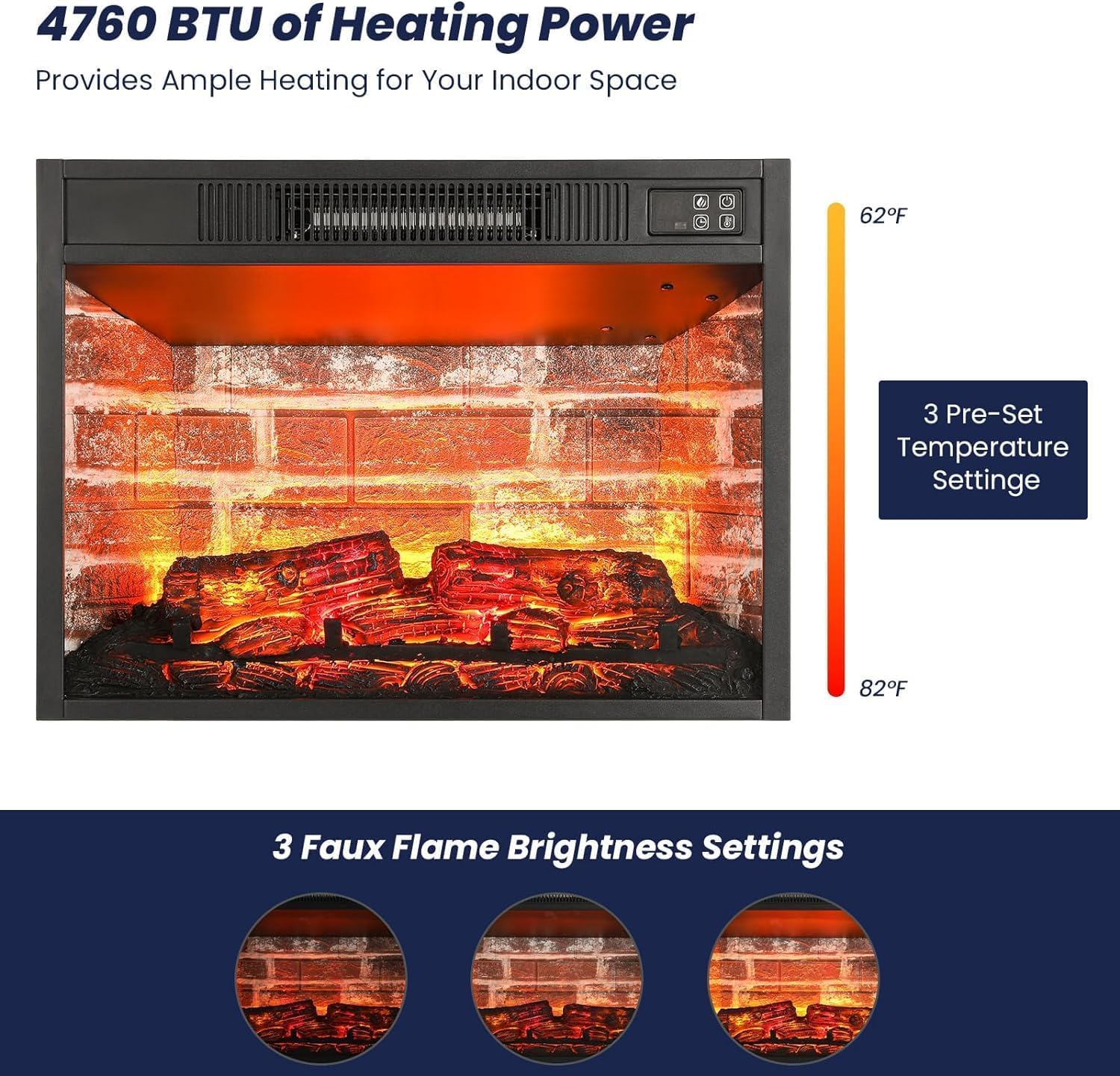 - 【Efficient Heating】 Both safe and convenient, the 1400W fireplace heater has a high power output of 5,000 BTU, warming up to 400 square foot room to enjoy the constant warmth and beauty without the smoke and ashes. Overheat protection and flame failure protection makes more safety.