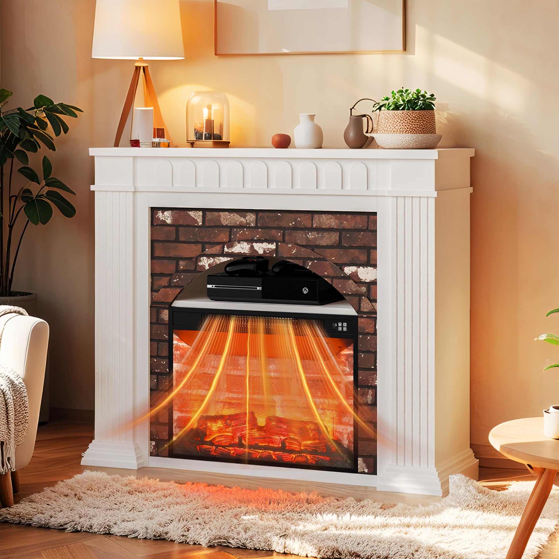 - Ambiance with 3D LED Flame: This electric fireplace mantel showcases 3D LED flames with adjustable brightness. A beautiful fireplace with mantel that brings charm even without heat.