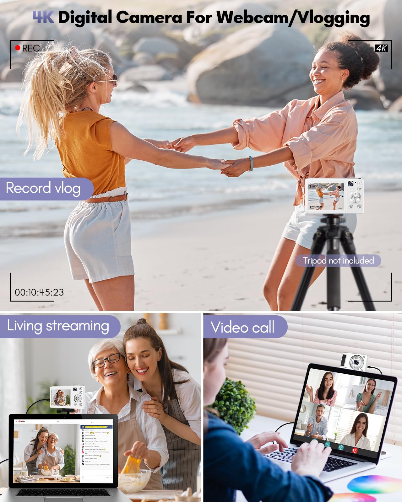 - 【48MP Dual-Lens Digital Camera, Easily Record Your Travels!】This digital camera uses the latest CMOS image sensor system, allowing you to easily capture stunning 48MP HD images. Equipped with dual lenses, it enables one-touch switching between selfies and landscape photos without the need for assistance. Even beginners can take amazing photos of people, scenery, selfies, and more during their travels!