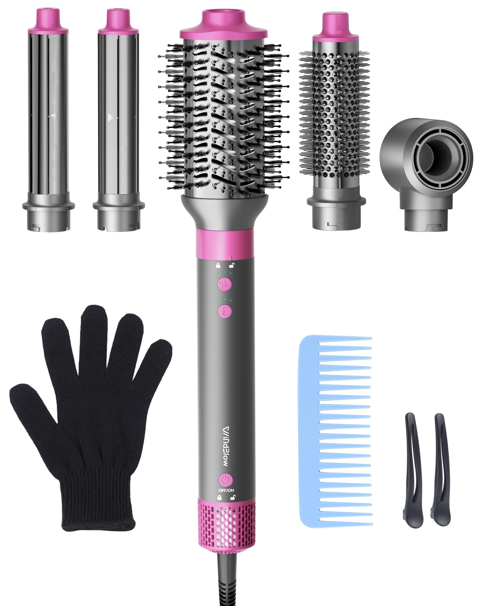 - 5-in-1 Magic Styler Set - WindBlow hair air styler, equipped with a 110,000 RPM high-speed motor, connecting to hair stylers and hair dryers, making it easy to explore styles suitable for any hair type. The set includes 5 interchangeable air-styling attachments for drying, curling, and volumizing. The hair dryer features a powerful brushless motor, delivering a strong airflow of up to 23 m/s to quickly dry hair in 3-5 minutes. The auto-wrap styler and hot-air hair brush allow for quick styling of wavy hair, curly hair, and voluminous hair, helping you achieve perfect looks.