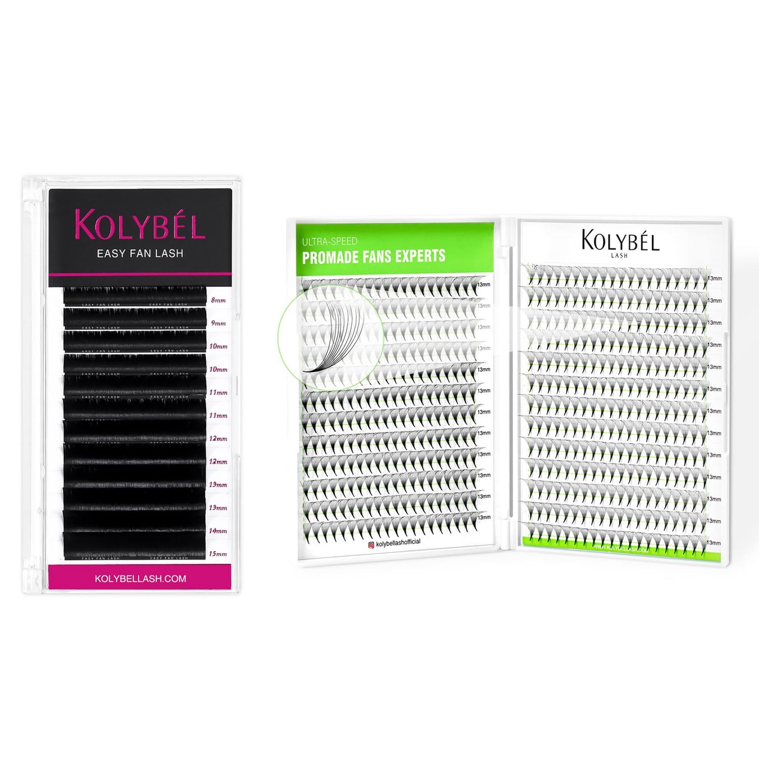 - COST EFFECTIVENESS:Kolybel premade fans 500 fans/ box,9-59mm Single Length Tray. Premade fans eyelash extensions mixed tray are more affordable and durable. Meet your needs in length, curl and thickness, and help you save money and time on choosing eyelashes.
