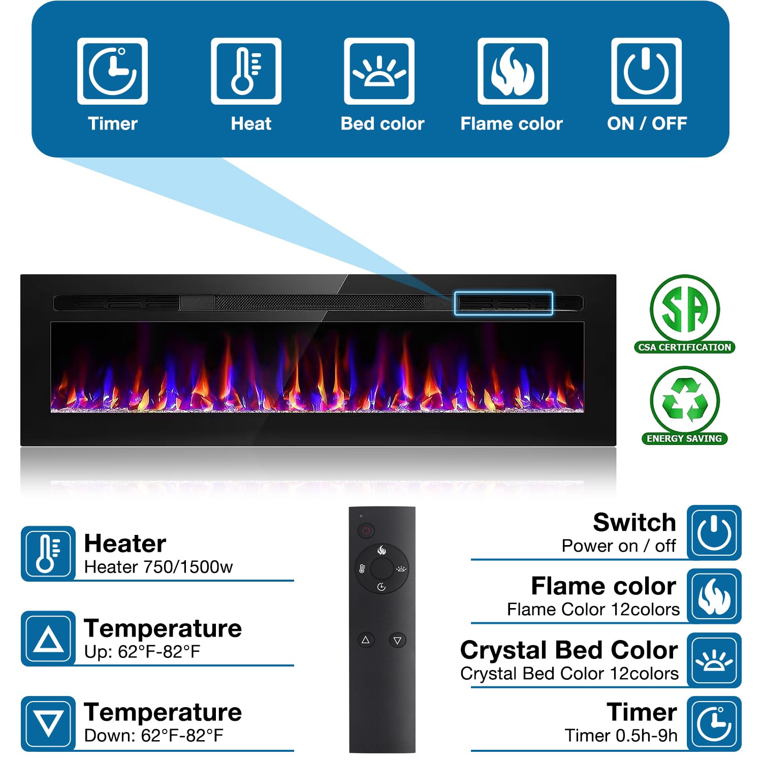 - 【Convenient & Flexible Remote Control】In winter season specially, it acts as a convenient and warm heater. All of this because of its remote and button panel, which makes it effortless and smooth to control the function of electric fireplace inserts. It also helps operates the power switch, 0.5-9 hours timer. It can help to adjust the flame bed color, independent switch of heating and flame and sleep mode function. All of this you can do without stepping out of your warm bed.