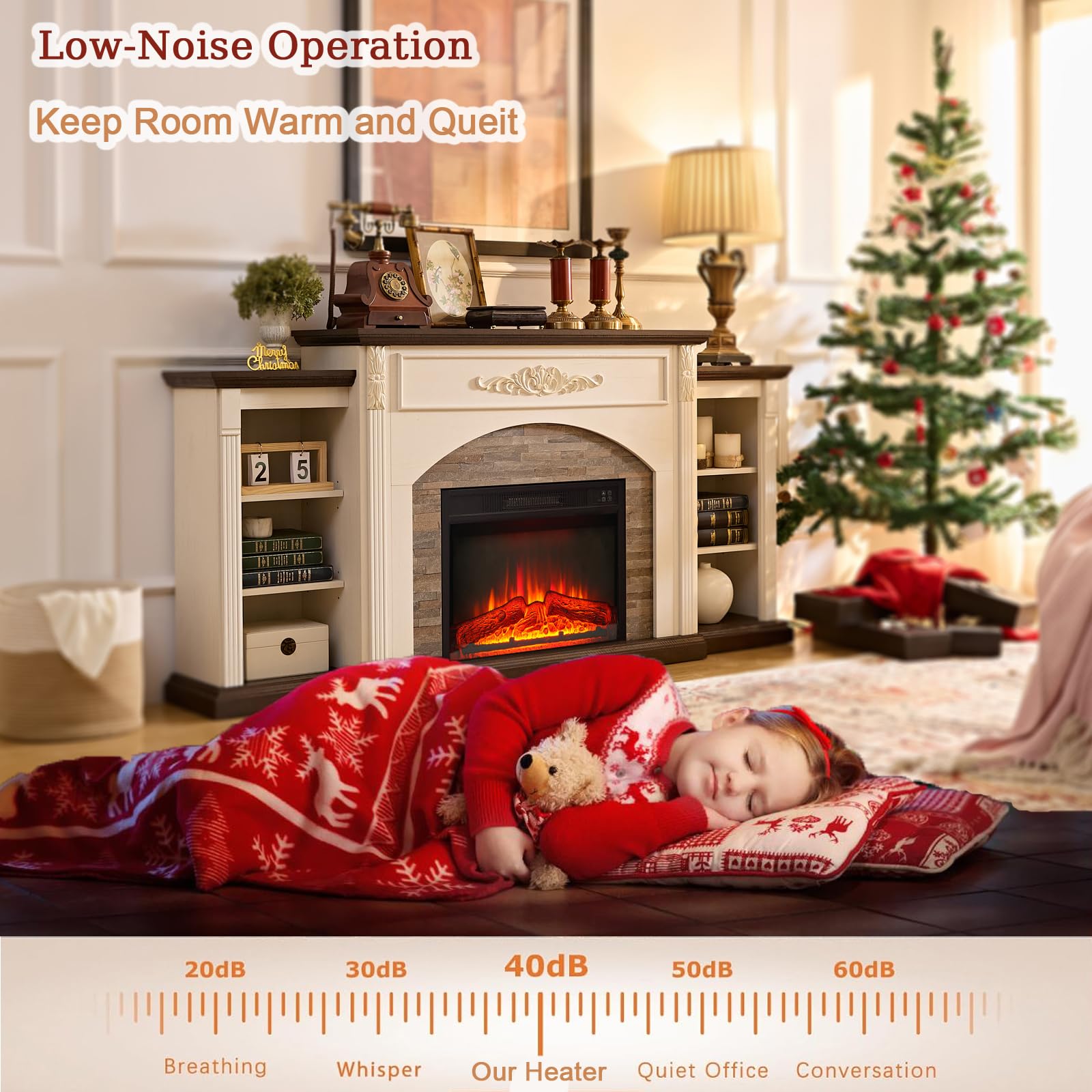 - 【23”Fireplace Insert】Farmhouse wooden freestanding 23”fireplace insert, which features 3 types of realistic LED flame effect, creating a perfect Christmas atmosphere. The electric fireplace heater comes with a remote control, which can be timed for up to 6 hours, so you can sleep peacefully until morning.