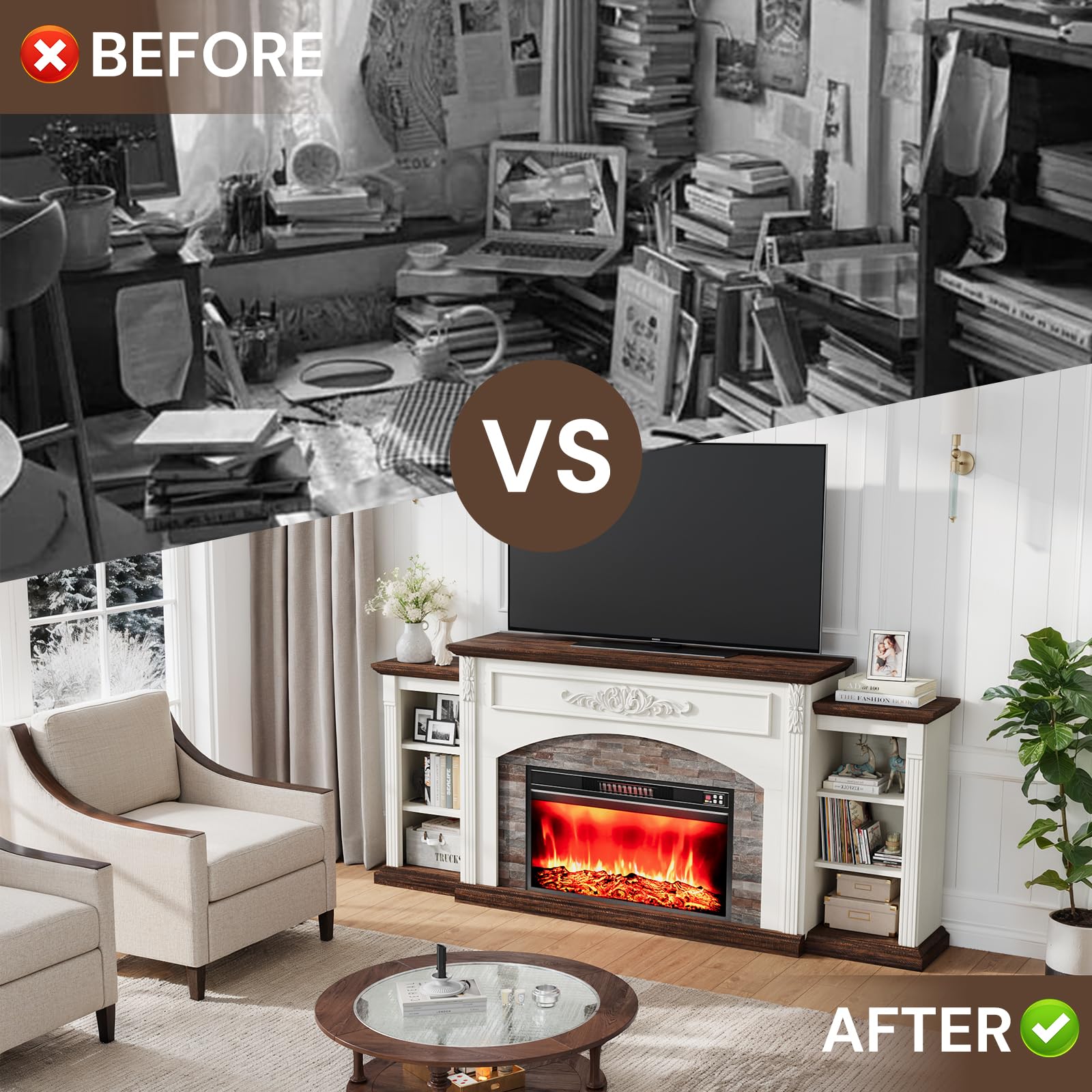 - 【Ample Storage with Open Shelves】This fireplace media console is designed with six open shelves to store cable boxes, gaming consoles, DVDs, books, and home décor. The spacious entertainment center keeps your living room, bedroom, or home theater clutter-free while providing easy access to your favorite media and accessories.
