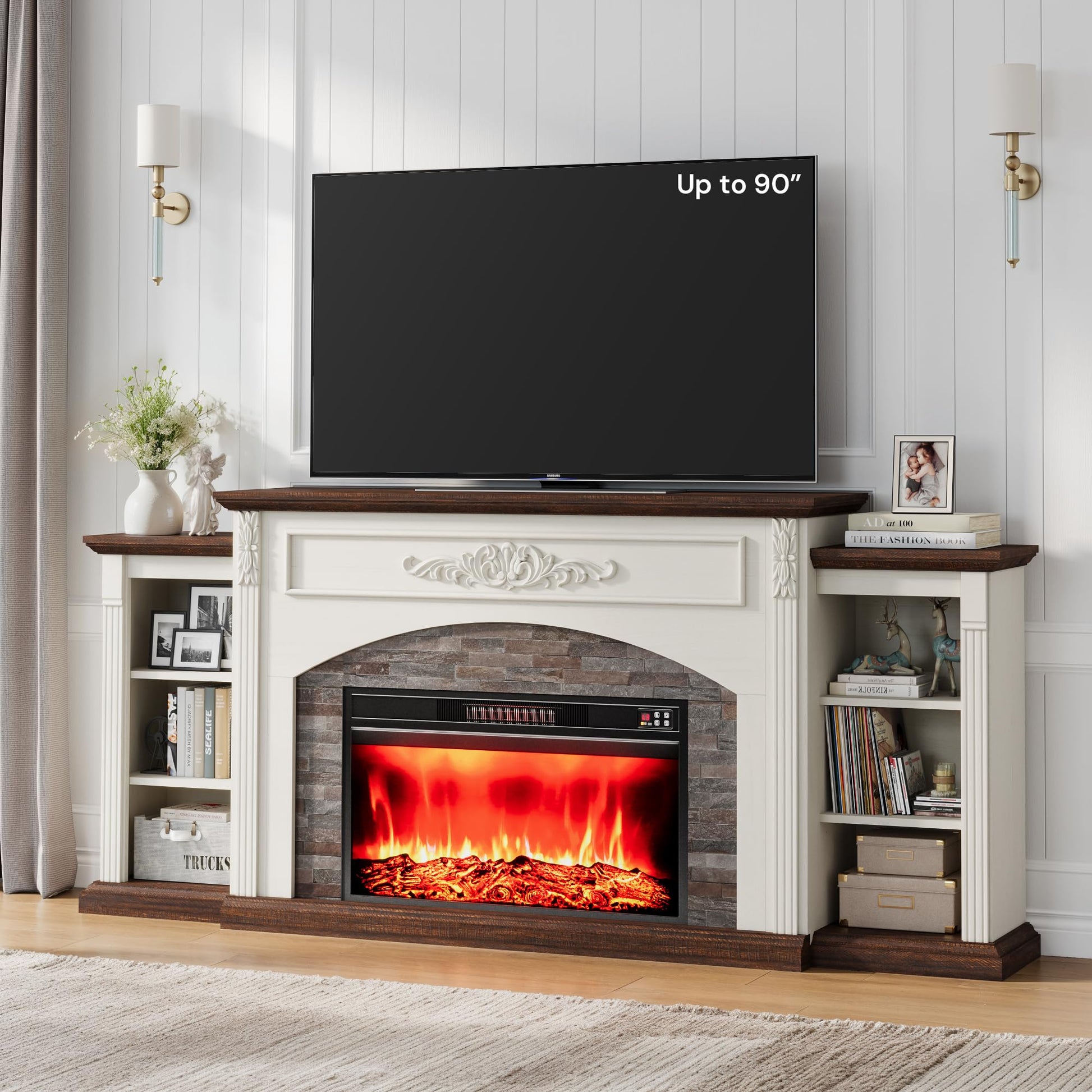 80" Electric Fireplace with Mantel, Fireplace TV Stand for TVs Up to 90",Modern Entertainment Center with Realistic Stacked Stone Surround,Wooden Carved Decorative Mantel, Ideal for Living Room