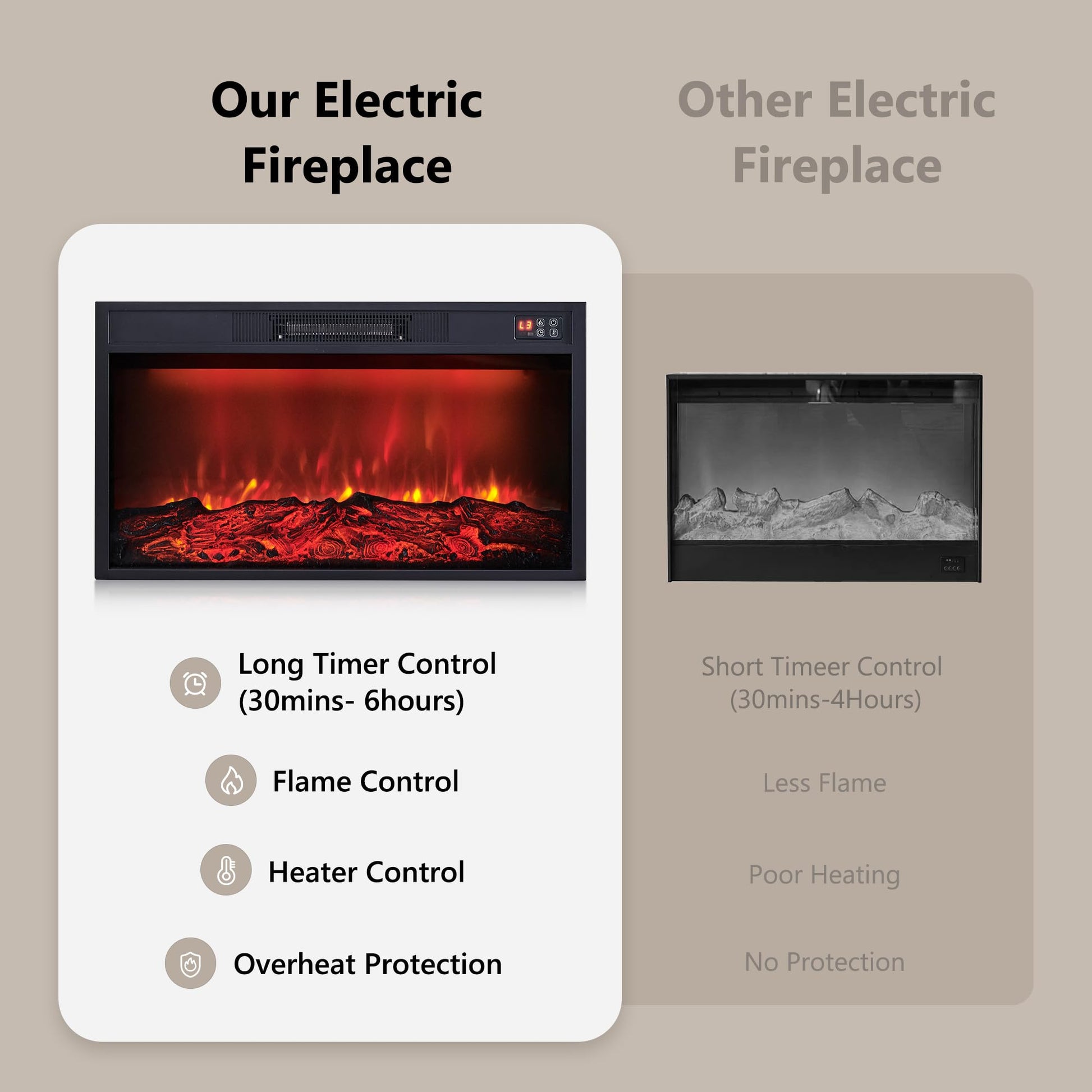 Aitjunz 30" Electric Fireplace Insert, Fireplace Heater with Remote, 3 Flame Control, Heater Control, Low Noise, 6 Hour Timer, Overheating Protection, 1400W, Touch Screen (Black)