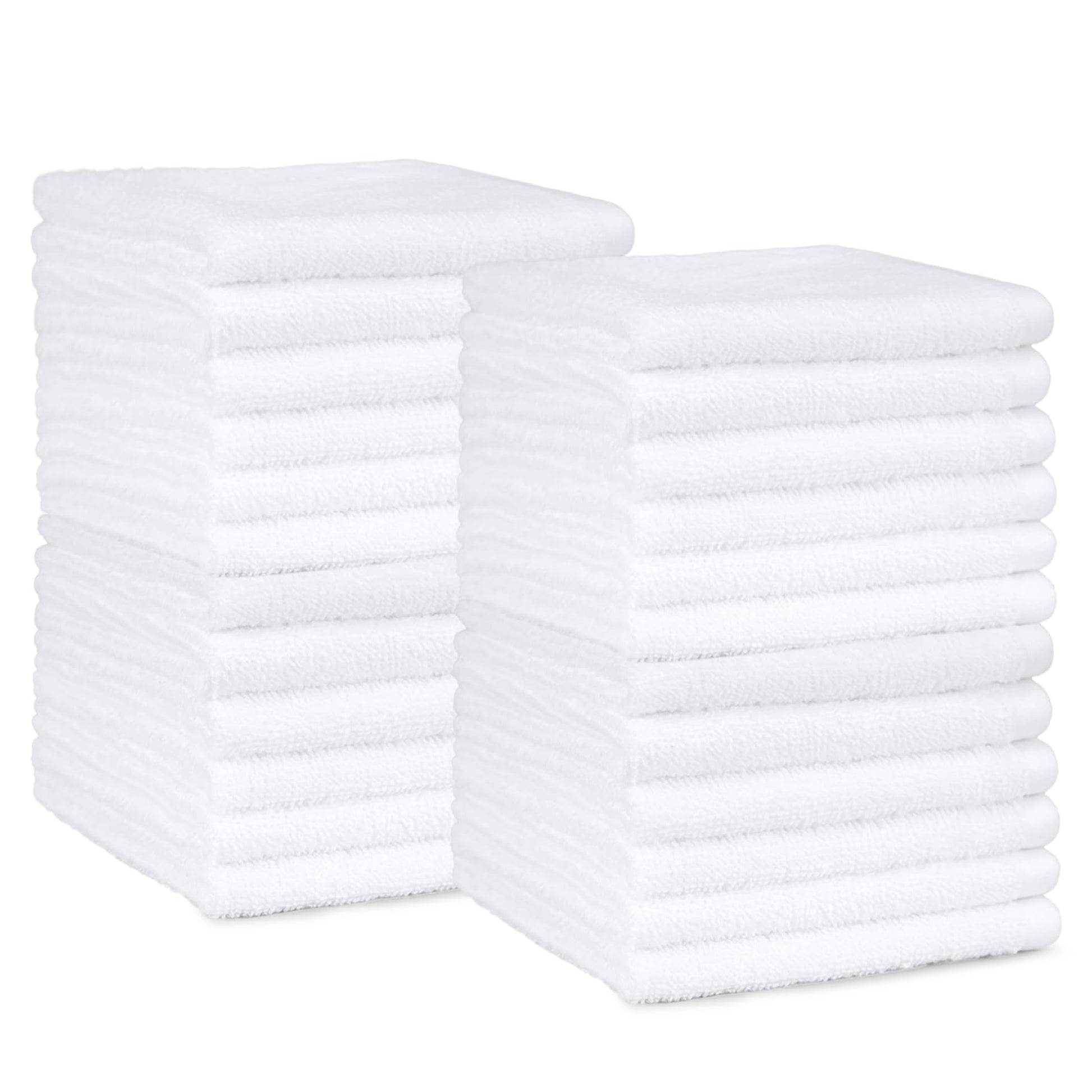 Amazon Basics 100% Cotton Washcloths for Bathroom, Fast Drying Salon Towels, Soft and Highly Absorbent, 24-Pack, White, 12 x 12 inches