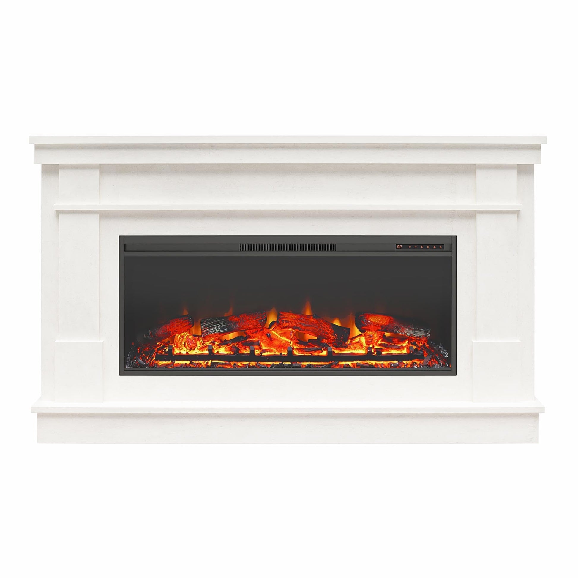 Ameriwood Home Elmcroft 64 Inch Electric Fireplace with Mantel, Replaceable Fireplace Insert Heater, Remote Control, Timer, Realistic Log and Flame Effect, for Living Room or Bedroom, Plaster