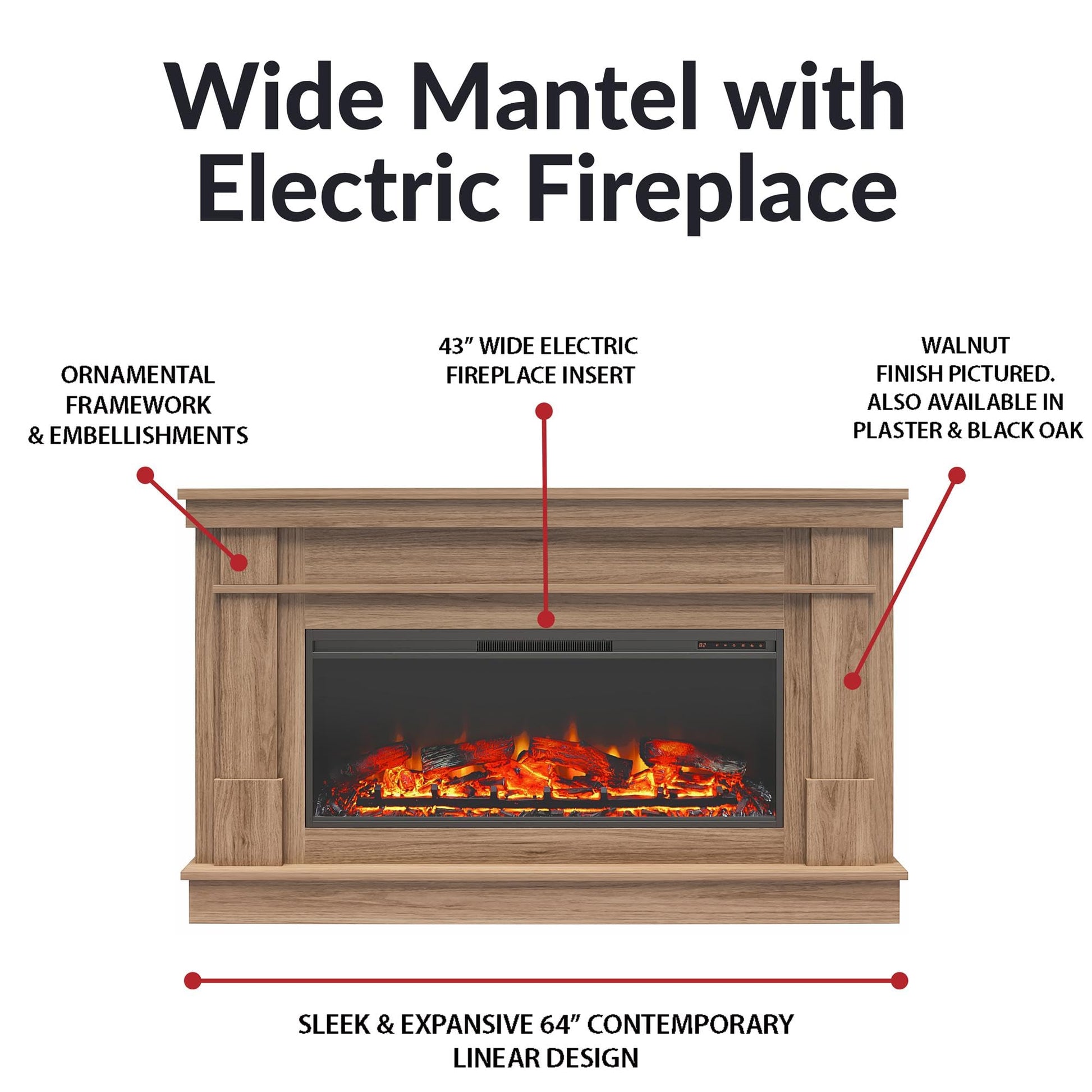 - EXTRA-WIDE MANTEL WITH MODERN LINEAR INSERT: Made from MDF and engineered wood; Featuring an extra-wide mantel and modern linear fireplace insert