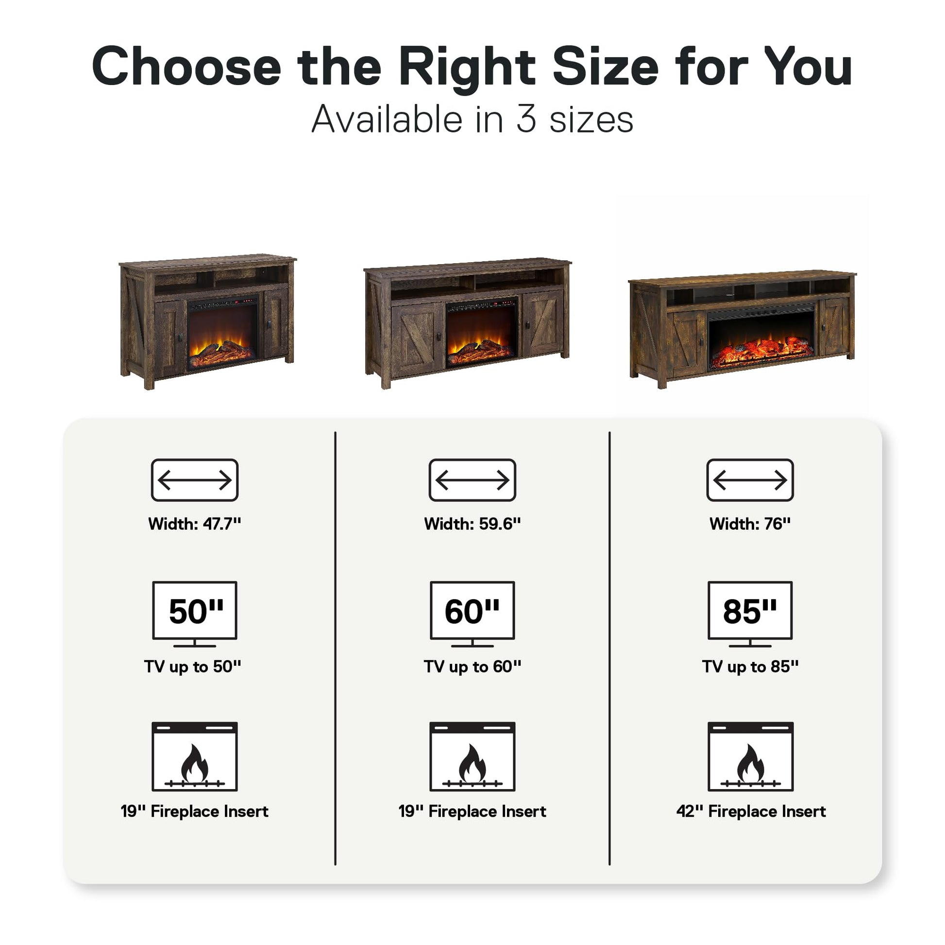 - RUSTIC INDOOR APPEAL: Bring the rustic outdoors in with Ameriwood Home Farmington Electric Fireplace TV Console for TVs up to 60' up to 95 lbs.; Constructed from durable engineered wood with a tempered glass front