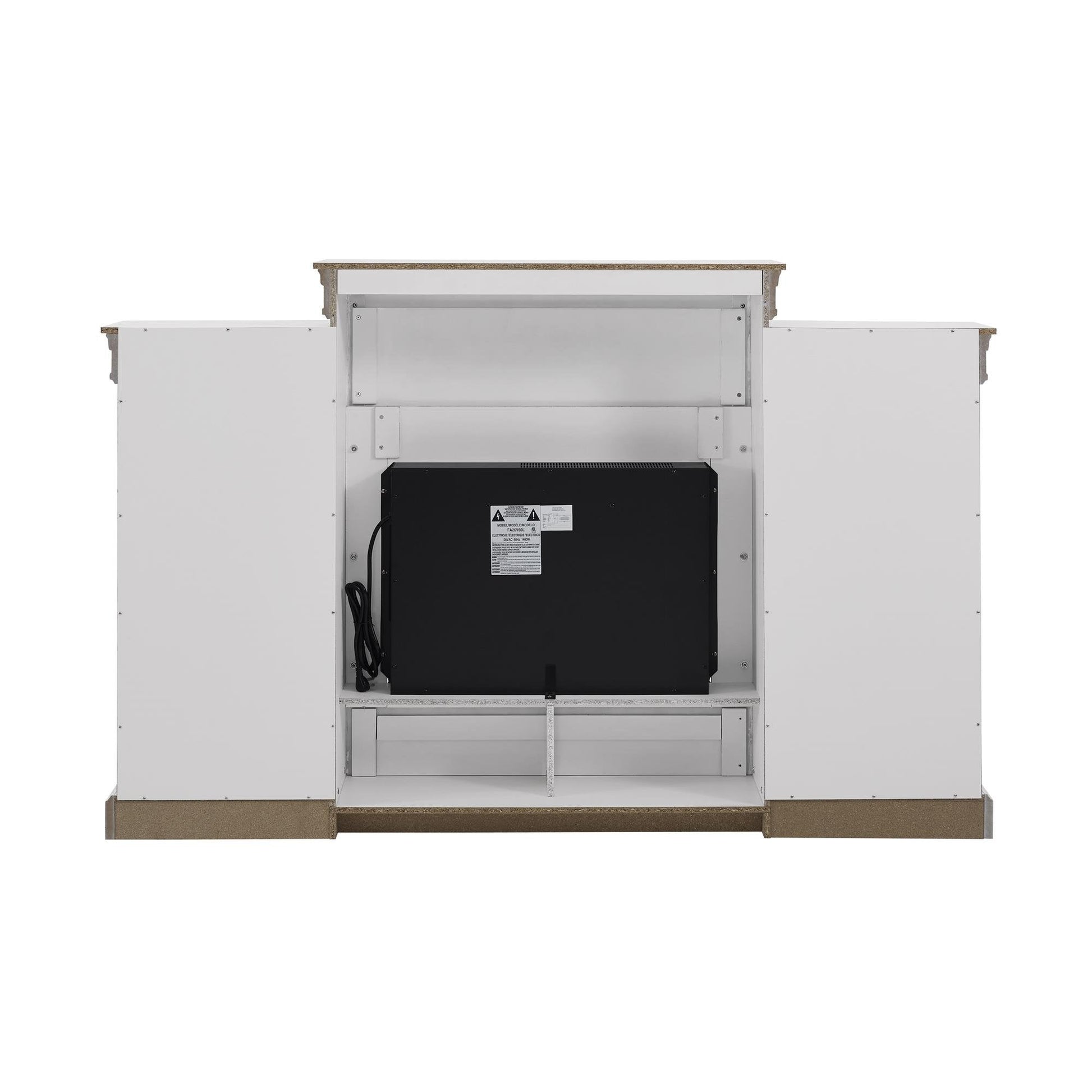 Details: Love being in your living room again as you cozy up next to the Ameriwood Home Lamont Mantel Fireplace. The laminated MDF and particleboard is finished in a crisp white finish for an updated, modern look. The white finish is accented by a dark gray marble effect around the center insert.