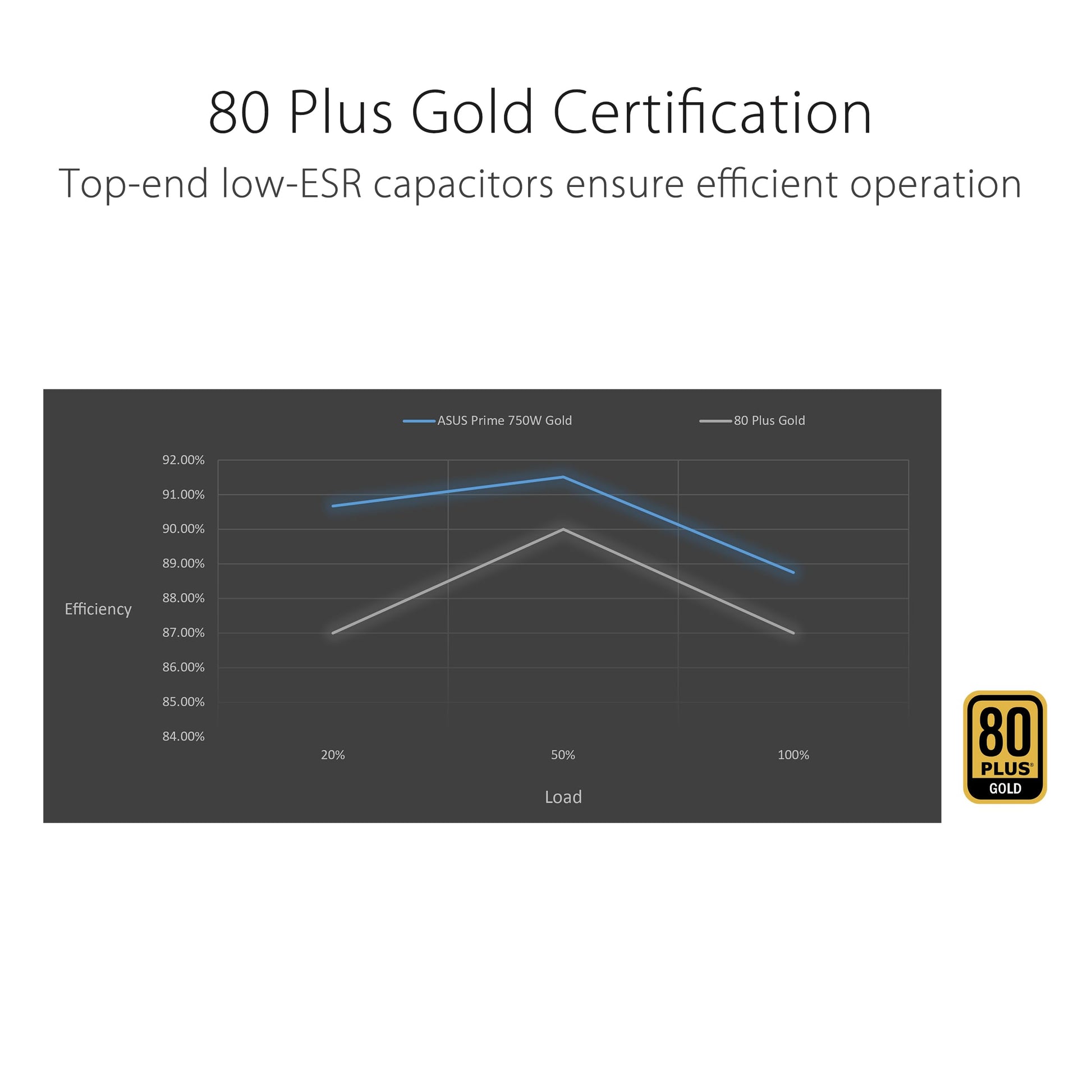 - An 80 Plus Gold Certification is the result of low-ESR capacitors and other premium components