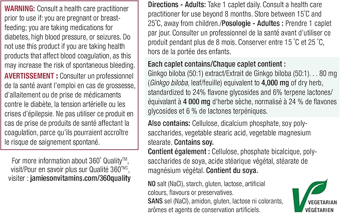 Jamieson Ginkgo Biloba 80mg 60+30 Caplets