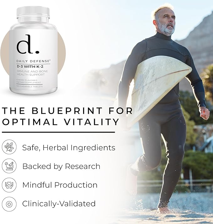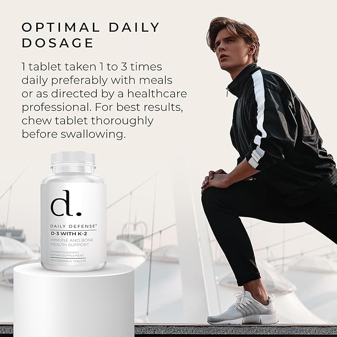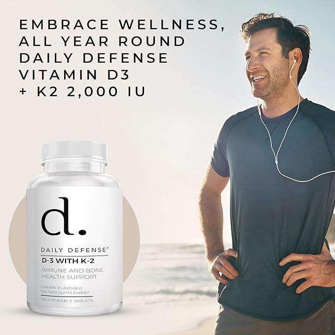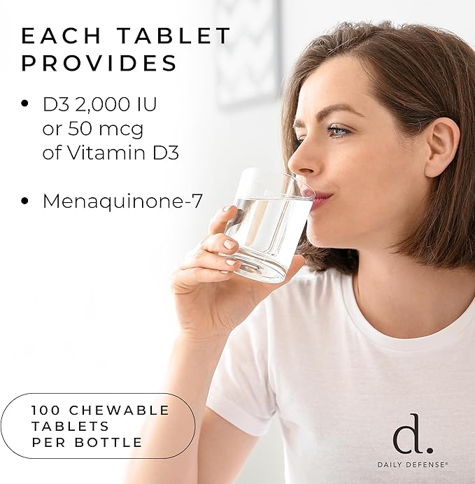 Immune Defense Supplements Vitamin D3 K2 2000IU for Heart Health, Daily Immune Support, Mental Clarity, & Muscle Function - 100 Chewable Tablets