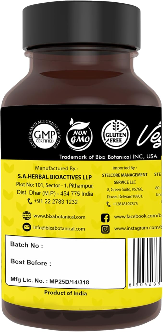 - WHY BIXA : We are a part of 147 years old Herbal Expertise Group , offering finest quality ingredients to craft our superior Herbal supplements, meticulously manufactured in a GMP-certified facility. Bixa Products are entirely pure and vegan, with Zero artificial flavors, colors, preservatives, fillers, additives, soy, or gluten. It is GMOs certified. It is sustainably sourced and nurtured with deep respect for all Ayurvedic principles, ensuring its integrity and potency. Choose Bixa for a natural, high-quality herbal supplement that honors the essence of Ayurveda.