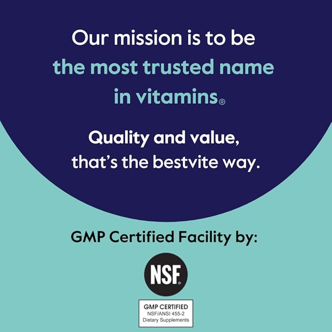 - NSF GMP CERTIFIED: Bestvite’s facility is NSF/ANSI 455-2 Dietary Supplements Good Manufacturing Practice (GMP) certified. Earning GMP certification from NSF verifies that a manufacturing facility has the proper methods, equipment, facilities, and controls in place to produce dietary supplement products.