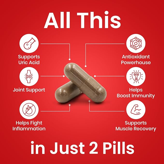 - Supports Uric Acid Management: Formulated to assist in uric acid metabolism, these tart cherry extract capsules help flush excess uric acid while promoting joint health and reducing discomfort caused by uric acid crystals.