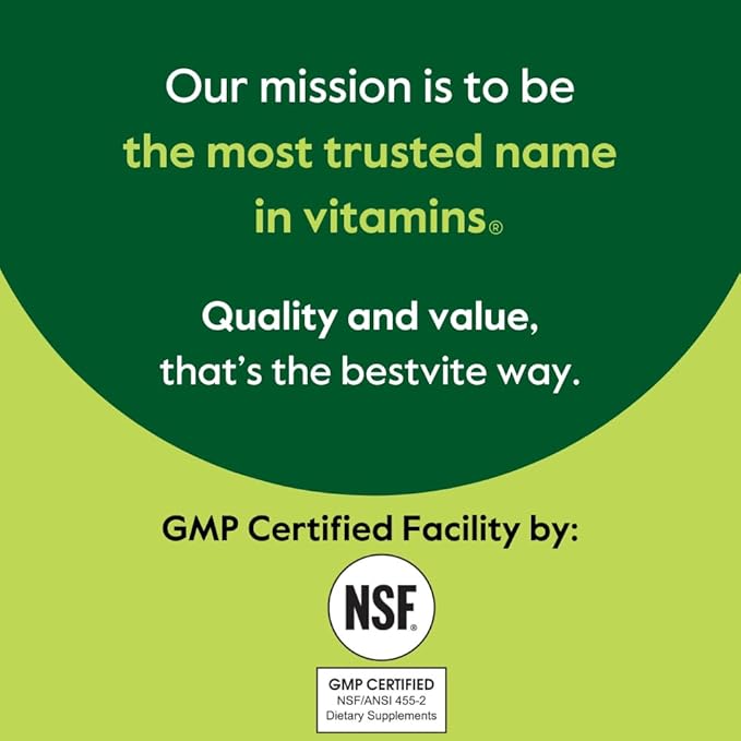 - NSF GMP CERTIFIED: Bestvite’s facility is NSF/ANSI 455-2 Dietary Supplements Good Manufacturing Practice (GMP) certified. Earning GMP certification from NSF verifies that a manufacturing facility has the proper methods, equipment, facilities, and controls in place to produce dietary supplement products.