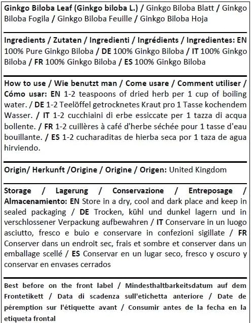 - 🌿Pure and Natural: Ginkgo Biloba Leaf Herba Organica is hand-picked from the wild and carefully packed, with no additives, preservatives, or artificial ingredients.
