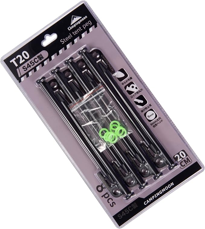 CAMPINGMOON Carbon Steel S45C Black Coating Tent Stake for Hard Ground (JP-T-20-8P)