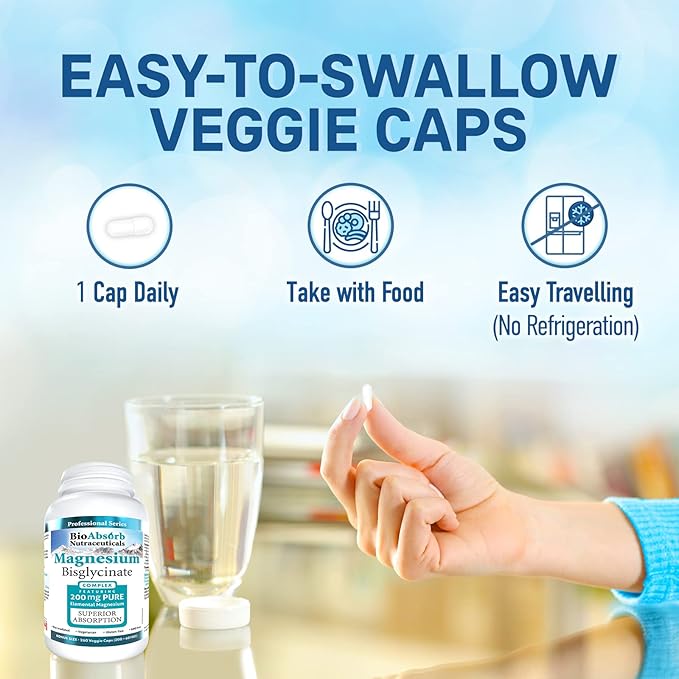 Bio Absorb Magnesium Glycinate/Bisglycinate Supplement. 200mg of Chelated Elemental Magnesium. 260 Vegan Capsules (260-Day Supply)