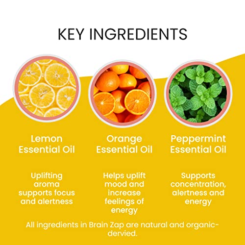 - ENERGY AND MOOD LIFT AROMATHERAPY: The essential oils included in our Brain Zap! blend are carefully selected for their ability to enhance and sustain energy, mental clarity, and focus