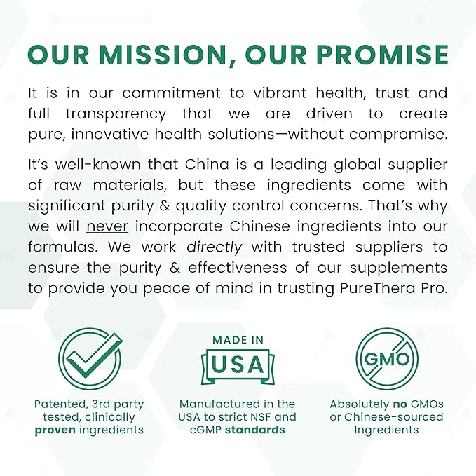 - πππππ ππ: Pure TheraPro Rx was founded in Denver Colorado to formulate and manufacture the highest quality supplements available on the market today. Purity is our priority, which is why we insist on using patented, clinically studied ingredients, and never utilizing fillers, flow agents, excipients, or ingredients sourced from China. We also never use dairy, gluten, corn, soy, or other common allergens in any of our class-leading, practitioner-recommended formulas.