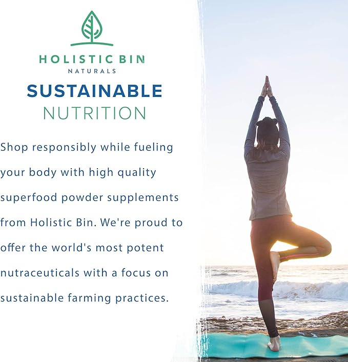 - SUSTAINABLE NUTRITION: Shop responsibly while fueling your body with high quality superfood powder supplements from Holistic Bin. We're proud to offer the world's most potent nutraceuticals with a focus on sustainable farming practices.