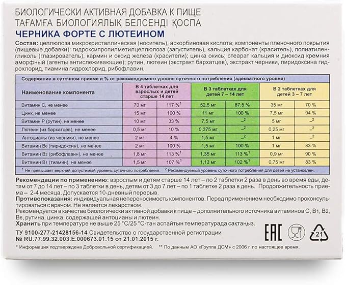 Blueberry Forte by Evalar Vitamins Lutein Zinc Minerals 100 Tabs