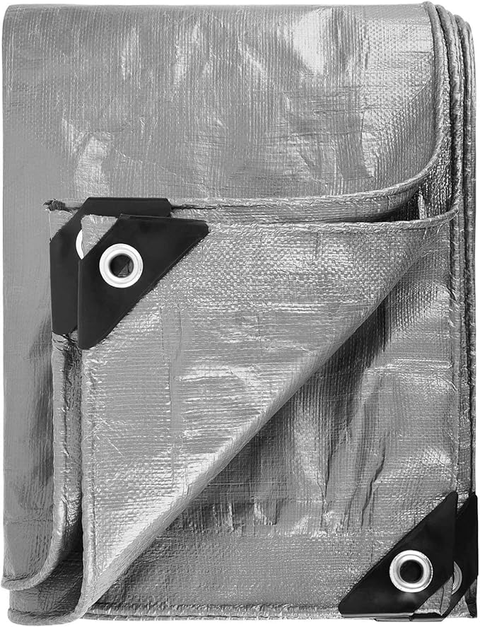 - High Qualtiy Fabric: Tongcamo tarp is made of high-density, tightly woven, made-to-last polyethylene fibers, UV protection against harmful sunrays and fading, waterproof, sunproof and windproof, can be applied to rain, shine, snow or wind all seasons. It has the strength, durability, woven tightly together and the plastic is laminated. The Silver Gray Tarpaulin has a 10 mil thickness, 5 oz. per square yard, and a 12 x 14 weave count.