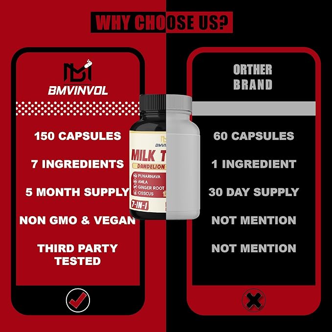 BMVINVOL Milk Thistle Capsules with Beet Root, Punarnava, Amla, Ginger, Dandelion, Cissus - 150 Count - 5 Month Supply