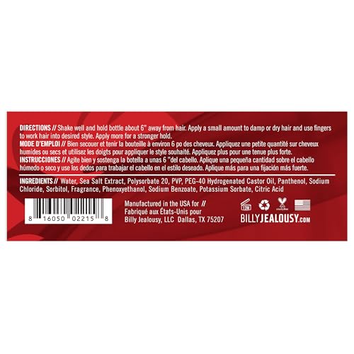 Billy Jealousy Sea Salt Spray, Texturizing and Volumizing Hair Spray for All Hair Types and Beard Lengths