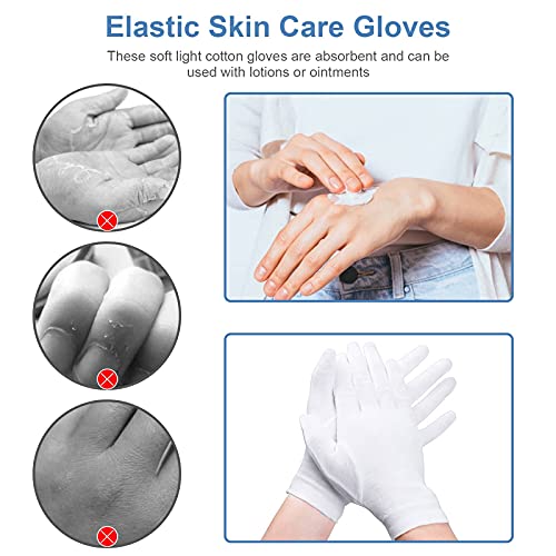 - SOFT AND COMFORTABLE GLOVES: Made of 100 percent premium cotton fabric, these white cotton gloves are breathable and comfortable to wear, they are thick enough that the cream doesn’t seep through, great for assisting in absorption of creams & ointments, moisturizing dry hands with eczema